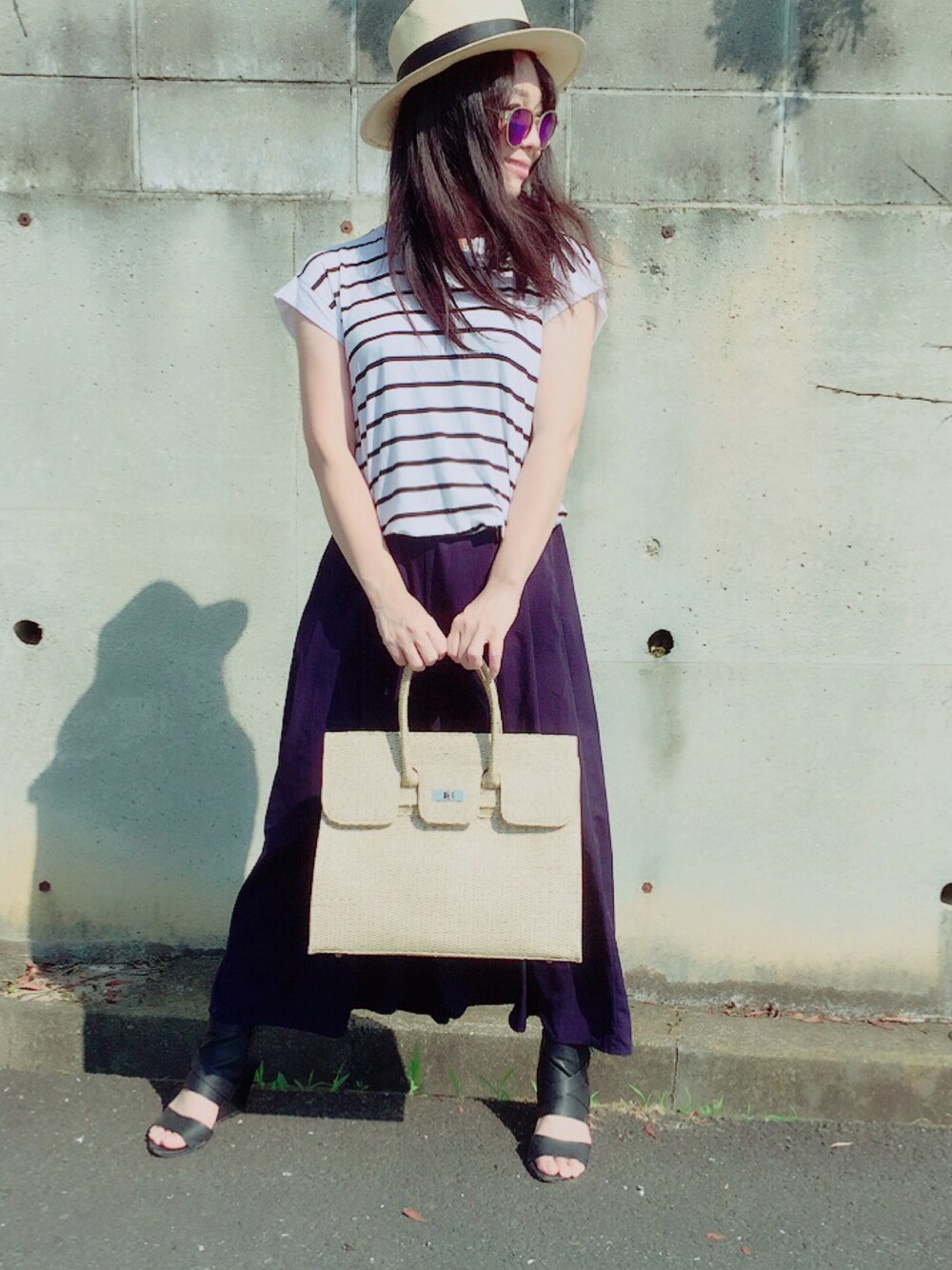 スカンツばかり✨ 今日も楽なカッコになりました✨ バーキン風カゴバッグお気に入り🌴🌴