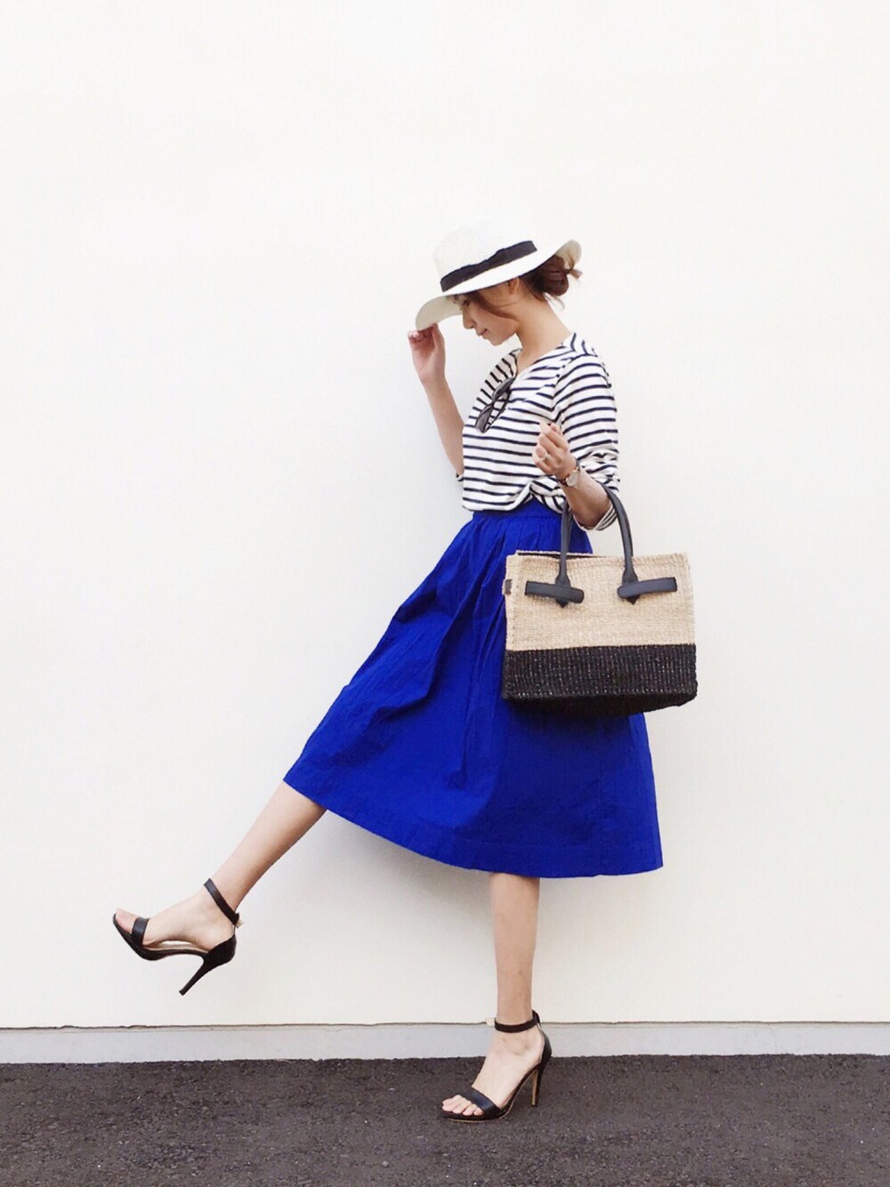 * * 本日のコーデ * * 今日のコーデのポイントはブルーのスカート♡鮮やかなロイヤルブルーのカラーが気に入ってます( ᵕ́ૢ‧̮ᵕ̀ૢ)‧̊·* ボーダーカットソーはまたまたGU♡半袖タイプも愛用してます♪ * * ハット sweetsheep #ボーダーボートネックt #gu#ジーユー#gumania#ジユジョ #スカート #haptic #ストラップサンダル shoplist #カゴバッグ#nostalgiajp * * #詳細はブログにて