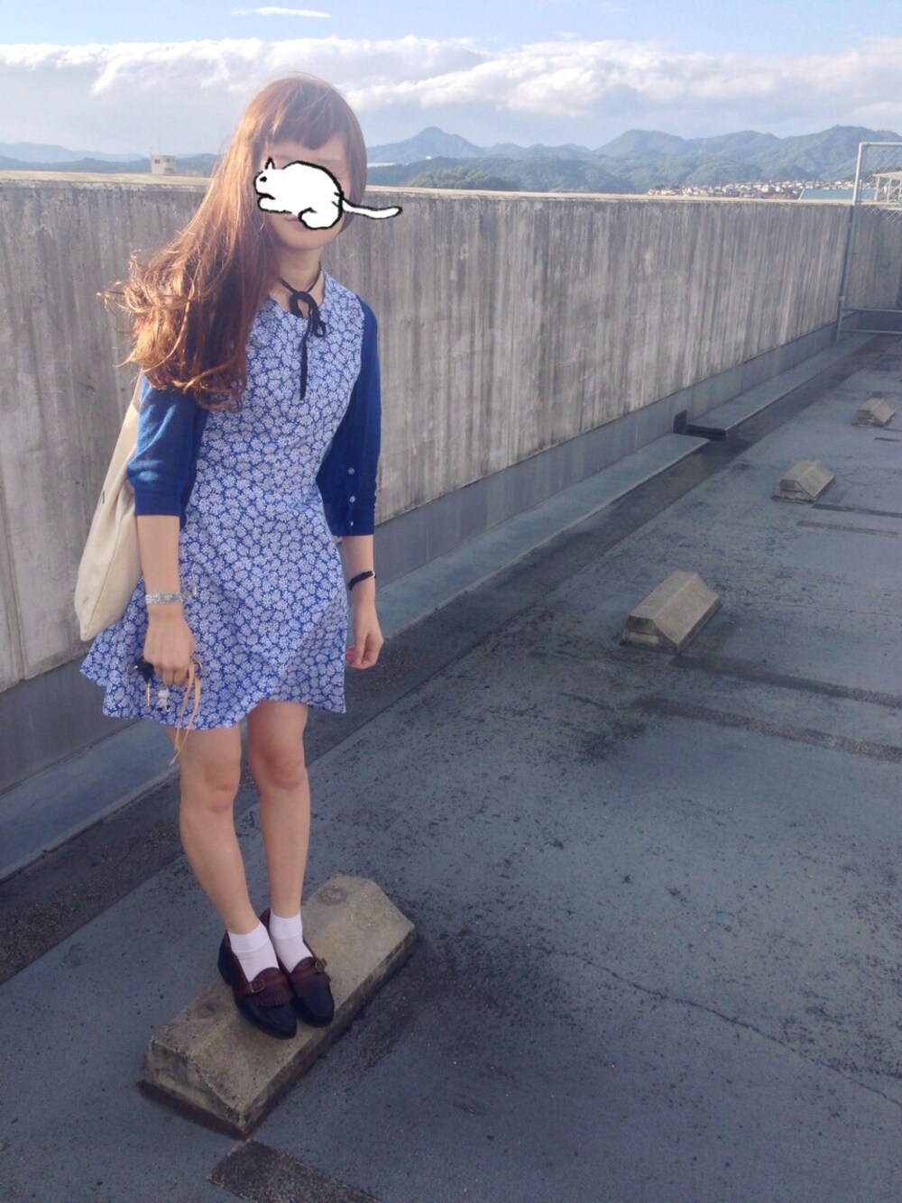 ワンピースは、韓国で買ったもの♩安かったー(^。^) リボンのタイもつけて見た♩ そして、古着のローファー♩♩サイズがピッタリ☆