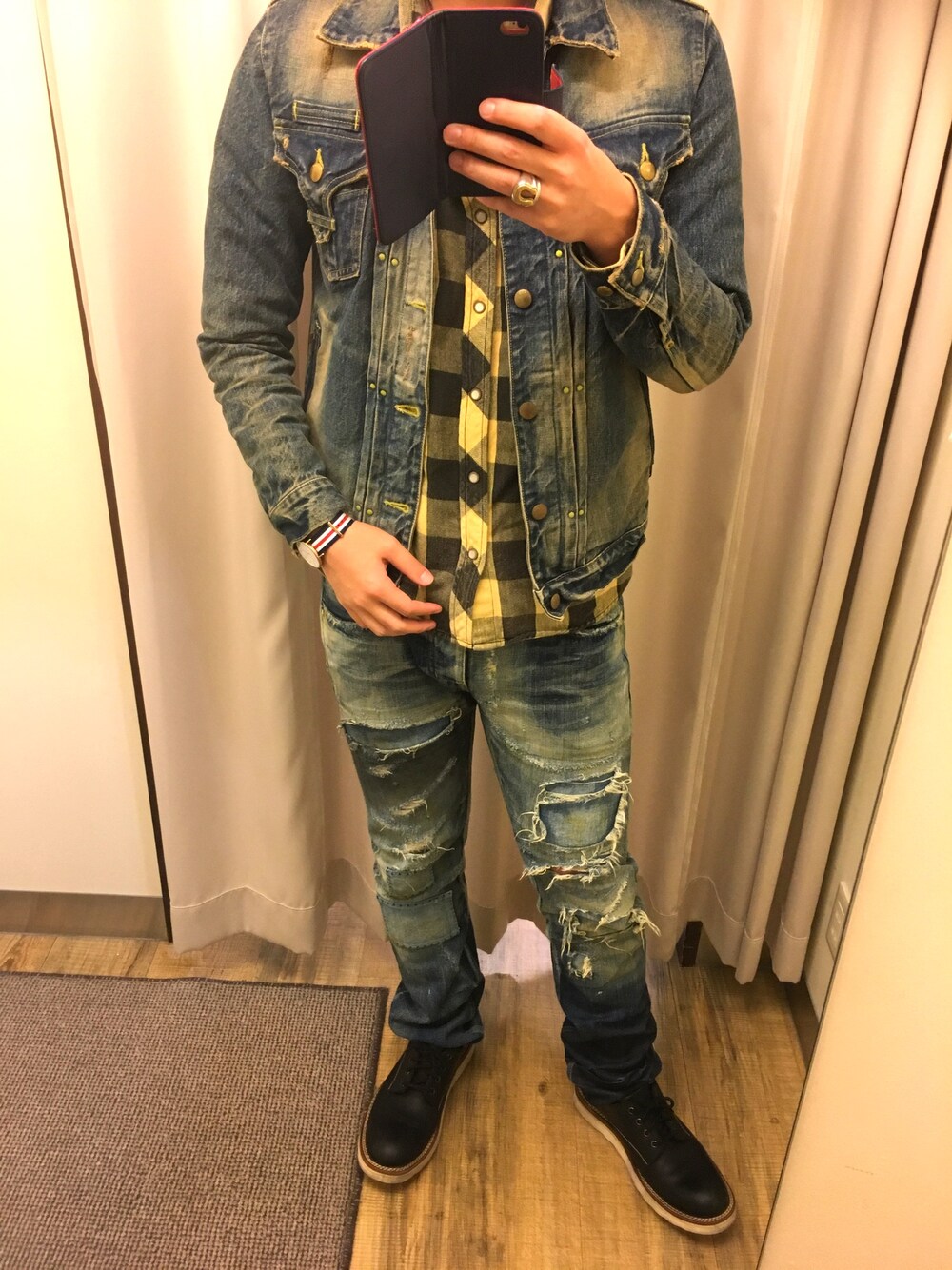 この前までの寒さが嘘みたいに今日は暖かったのでデニムオンデニム。 このRICOのデニムジャケット昔から着てるな。