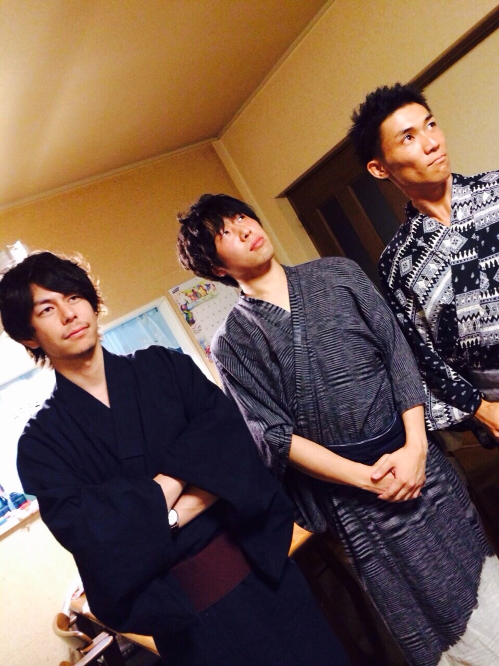 ブルー系の浴衣を着用したメンズの夏コーディネートの1枚目の写真