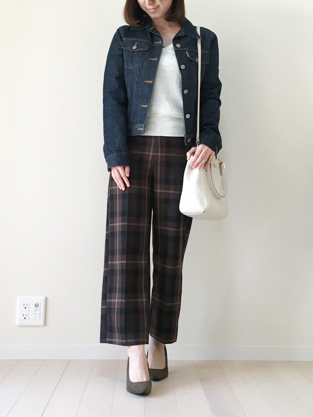 big_forestのパンツ「(GU)ワイドクロップドパンツ(チェック)」を使ったコーディネート