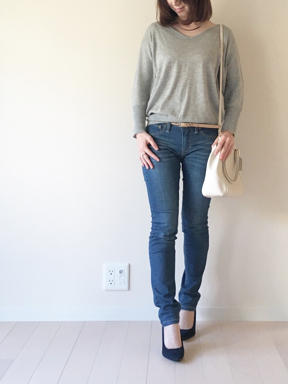 連休2日目の今日は天気もよかったので爽やかにグレーニット×デニムの組み合わせにしました^o^ 全体的にカジュアル色強めだったので、今日はアクセサリーをいつもよりも多めにしてみました♫ この色の組み合わせも小物類でキレイ目にできますねっ。