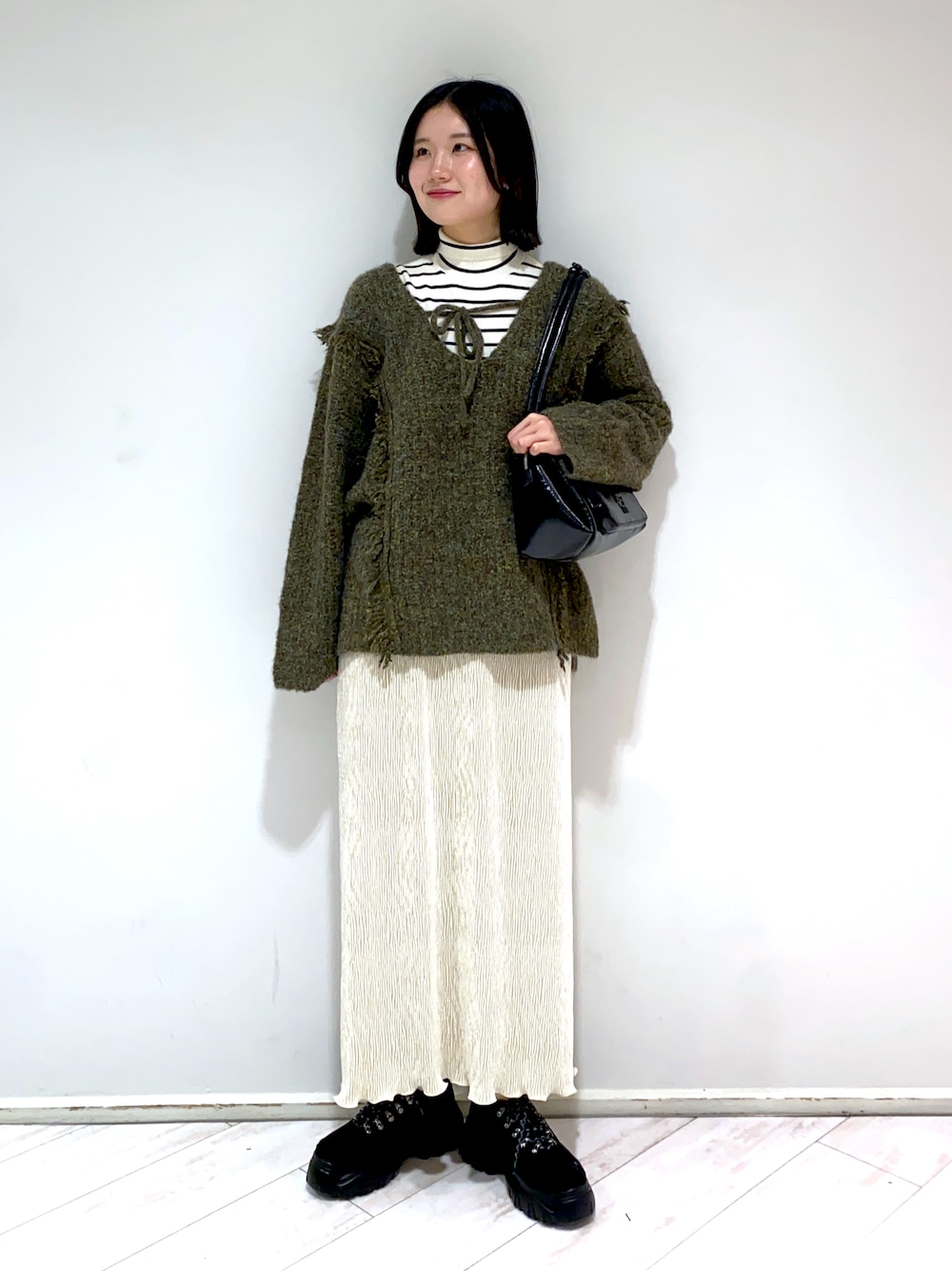 ○ニット(free) 毎年大人気のメランジニットが今年も登場です!! 前後2wayで着れるゆったりしたシルエットです!🫶🏻 ウールが入っているので真冬まで暖かく着れます✨ 〇インナー(free) カラーバリエーション豊富なインナーです! 程よいフィット感なので1枚でもインナーとしても着れます💙 ストレッチ性があり着心地抜群です! ○スカート(FREE) 伸縮性抜群で後ろにスリットがあるため楽ちんです!! 生地感が分厚すぎないのでベロア生地ではありますが 今から着れて真冬まで長く着ていただけます🖤 ○シューズ(Lsize) 厚底なのに軽くて歩きやすいシューズです👞! 紐に伸縮性があるので脱ぎ履きしやすいです!