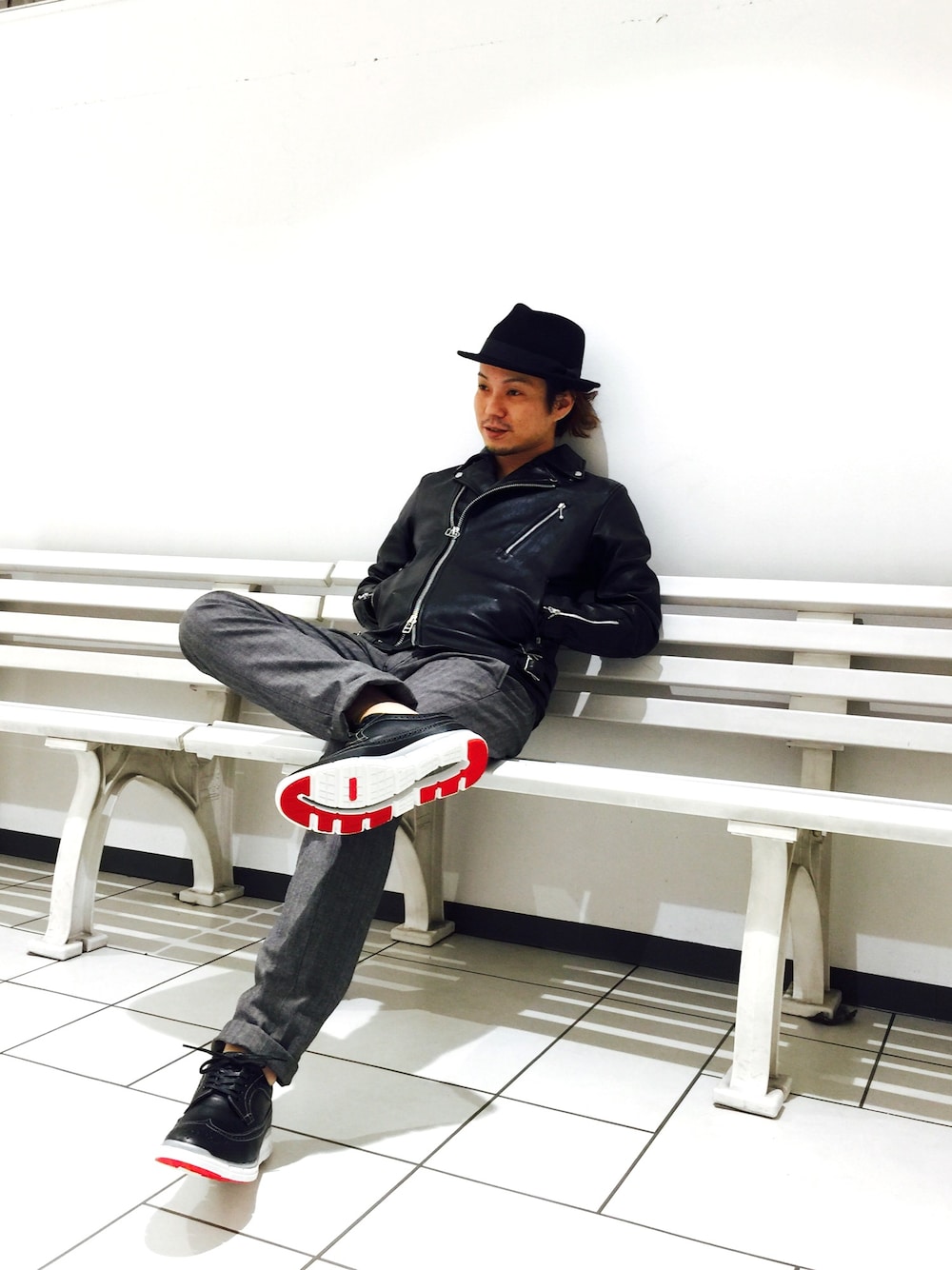 MEN'S BIGI熊本PARCOのライダースジャケット「ラムレザージャケット ダブルライダース/大人レザー」を使ったコーディネート