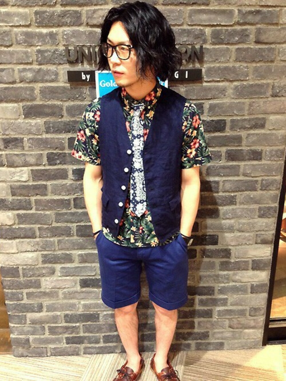 ぐっさんのベスト「<「smart6月号」掲載 成宮寛貴さん着用商品>シャンブレーリネンベスト(ジレ)」を使ったコーディネート
