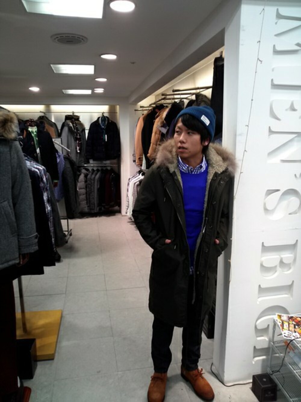 ワーキーながらファー付きのエレガントさがカッコイイ、モッズコート。 アクセントカラーにブルーをチョイスして洗練された雰囲気に。