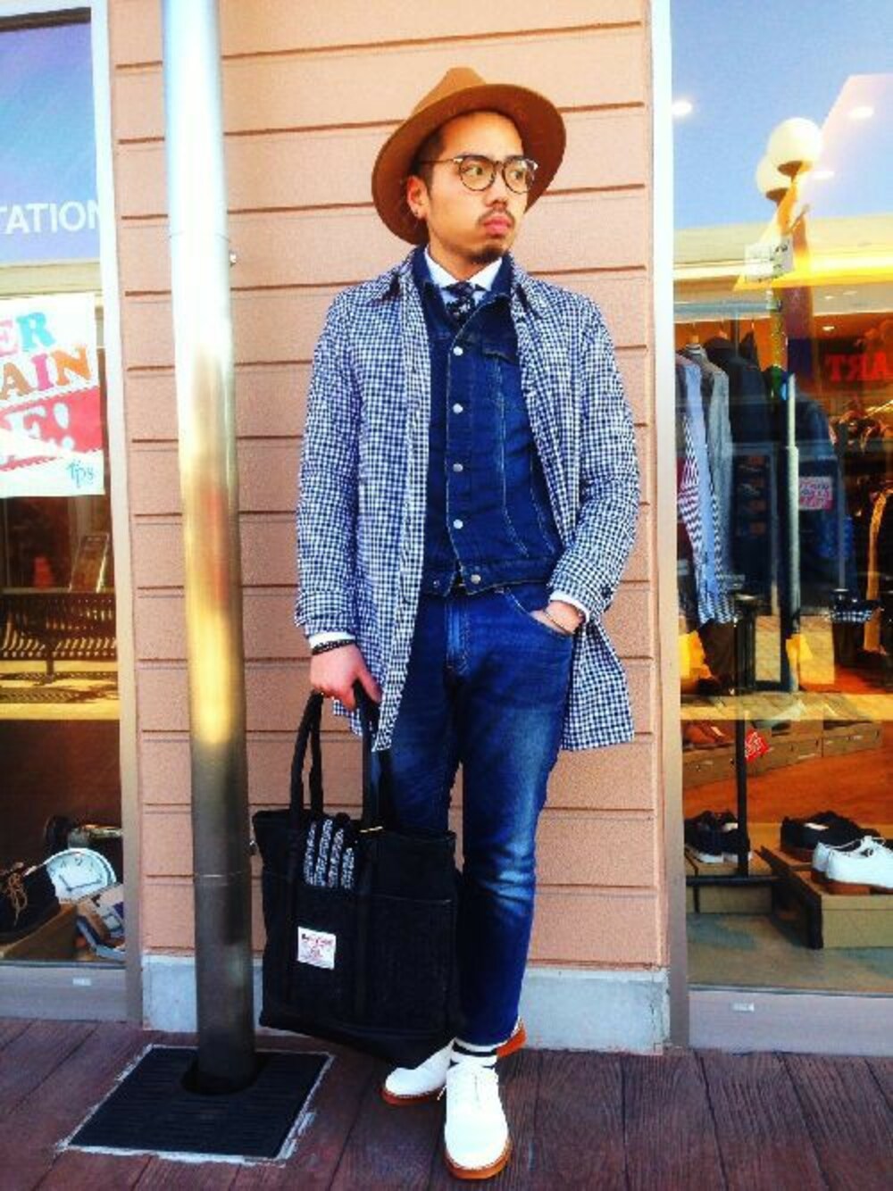 ☆ネオデニムONデニム☆ 男臭くささを残しつつも 足元に白のレザーシューズを合わせ、タイドアップ+コートできちんと感を演出しました。