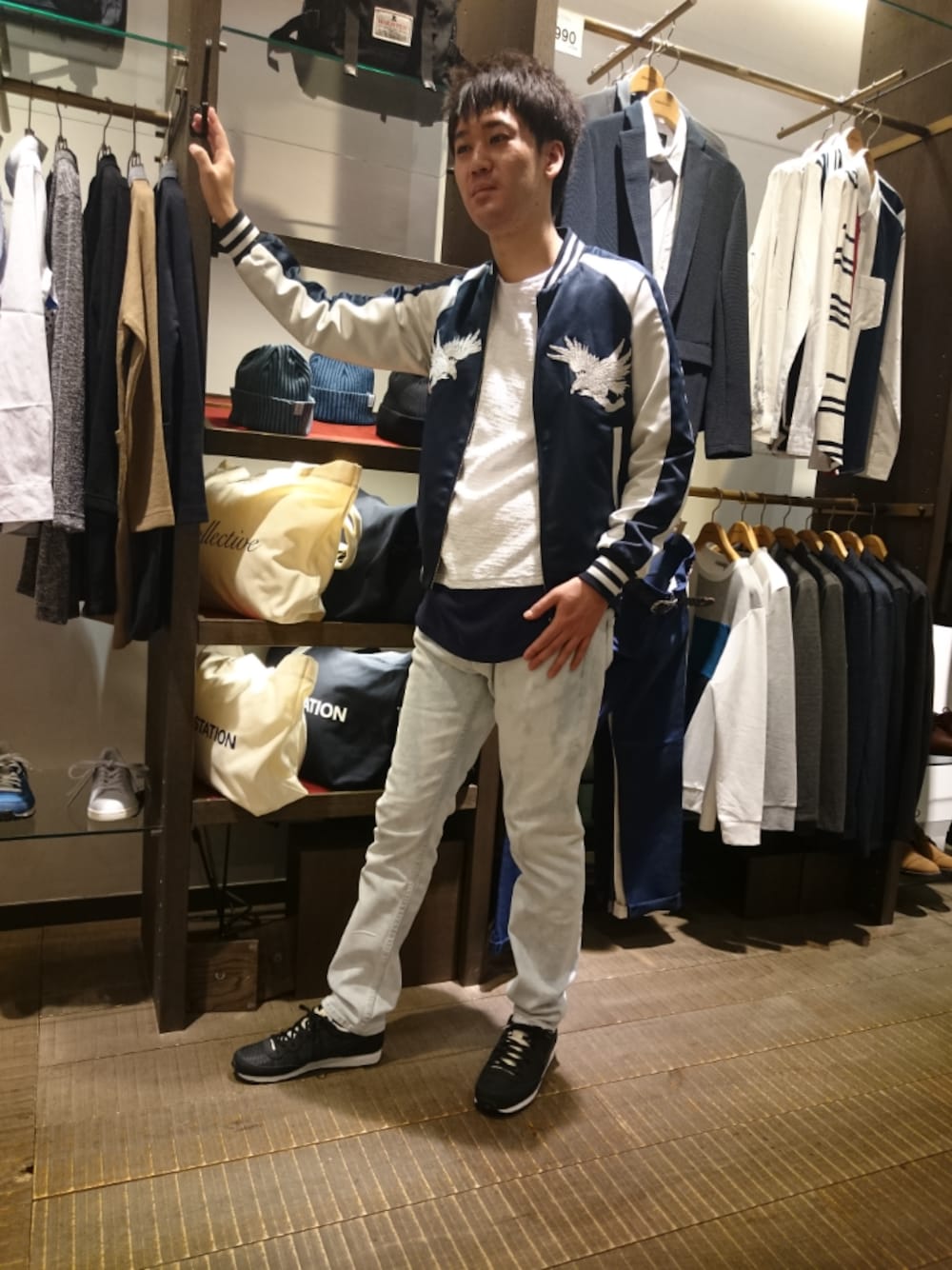 こんにちは、流山ユニオンステーション中村です。 僕が着ているスカジャンはリバーシブルです。表は刺繍が入って今っぽい雰囲気に、裏は無地でシンプルに変えられます。着まわしが多いのでオススメです。