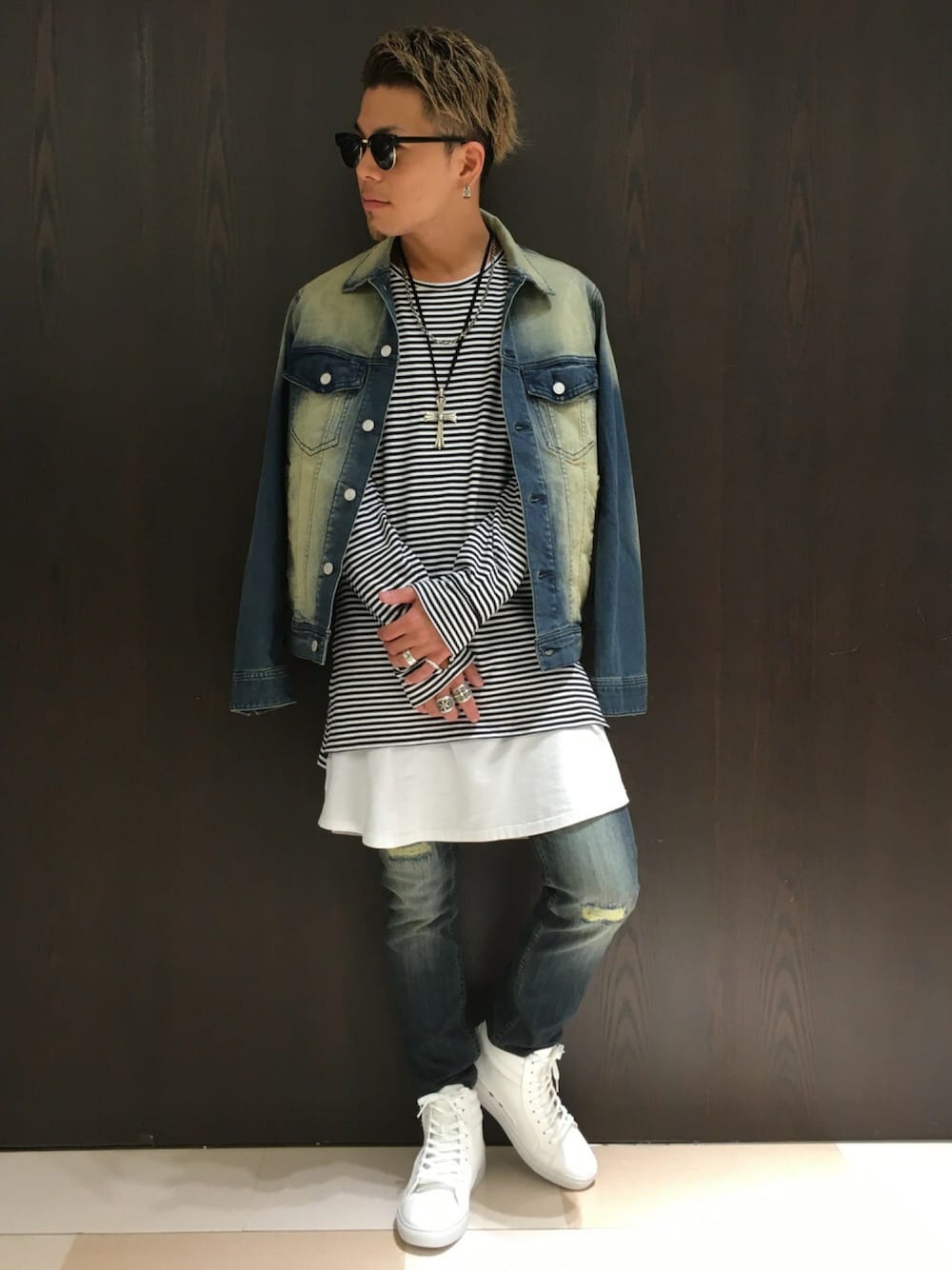 またまた新作紹介です!!最近はAW商品が絶好調です😜 今回は自分の大好きなデニムコーデで紹介します!毎年定番のストレッチGジャンにロングボーダーの中に白ロングTをレイヤード!スニーカーは新作の白ハイカットを入れてみました😊個人的に好きな合わせですが、気に入った方は真似してみてください😜