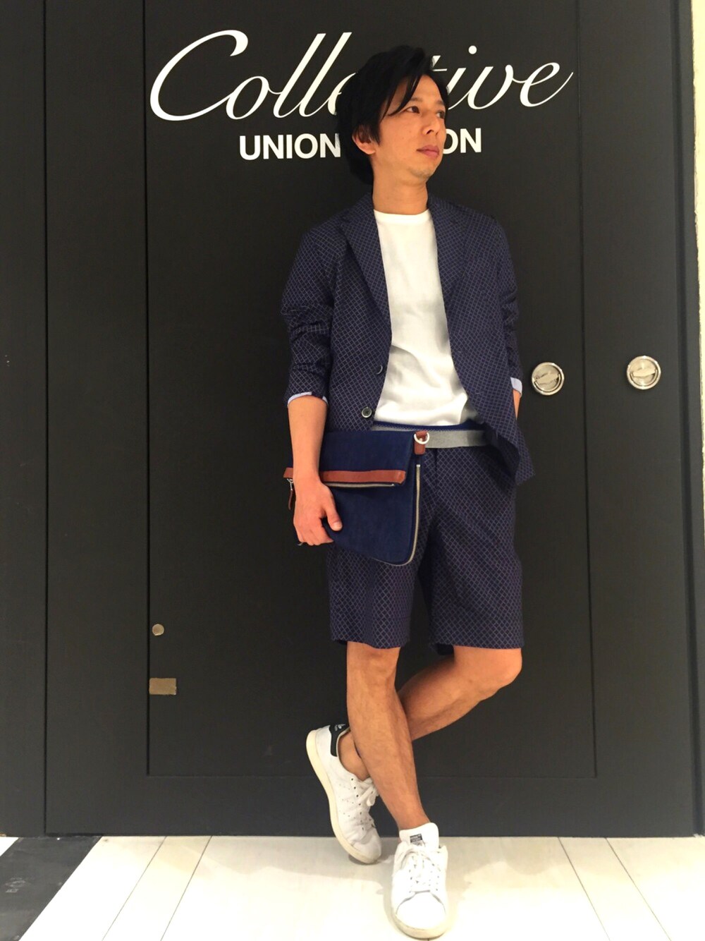 ☆☆☆ こんにちは( ´ ▽ ` )ノ コレクティブ名古屋パルコ店です。 今回はGWにオススメな格子柄セットアップスタイルです。 パンツはショーツなので暑苦しく見えなく、素材は『AiRY DOT』ドット状のメッシュ素材だから、通気性とストレッチ性も高い!だから涼しくて、軽い!!もう1度言います。涼しくて軽い!(笑) セットアップが格子柄なのでインナーは無地でシンプルに! インナーの綿ニットはスソにラインが入っているのでジャケットを脱いでもシンプル過ぎずOK!