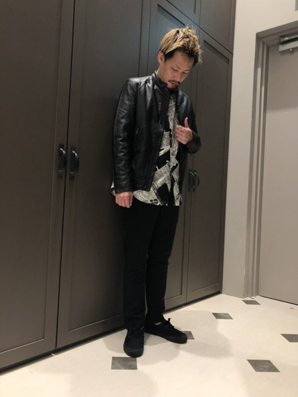 みったのライダースジャケット「フェイクレザーシングルライダース」を使ったコーディネート