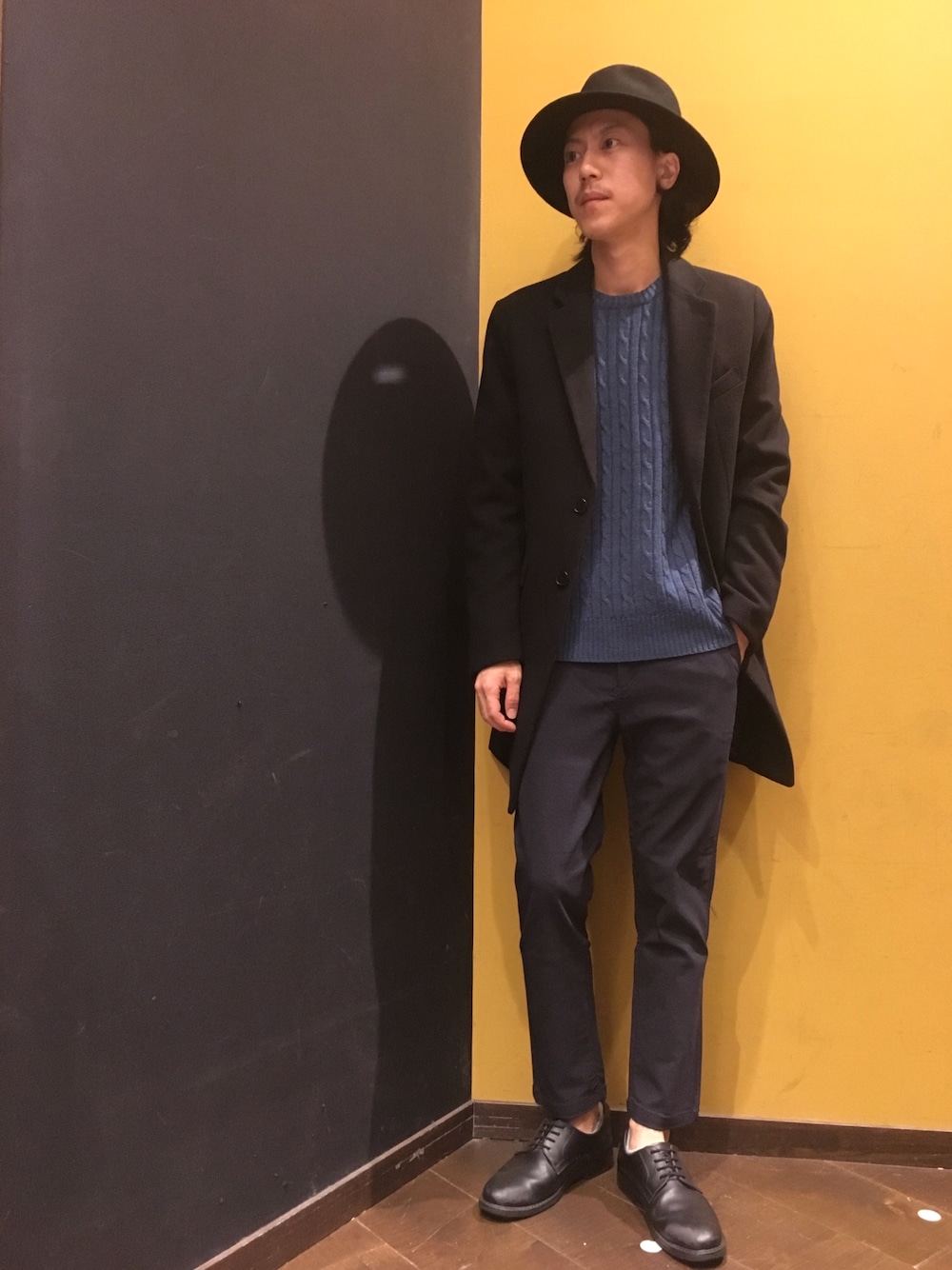 チェスターコートのキレイ目コーデ。 ブルーを差し色に(^^)