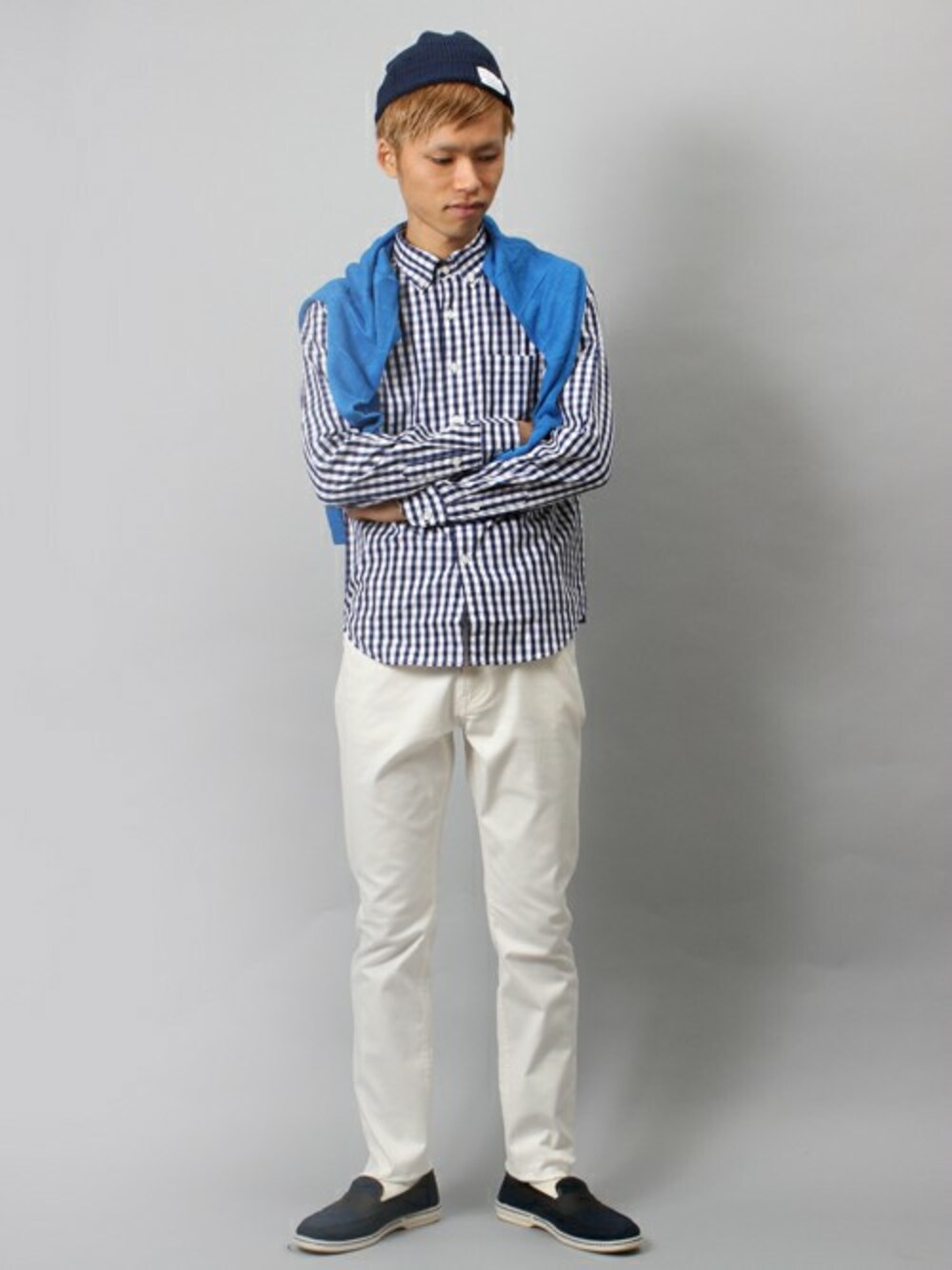 この春注目のギンガムチェックのシャツに ホワイトパンツを合わせた、テッパンスタイリング。 新鮮さと軽さを出した、おすすめコーデです。
