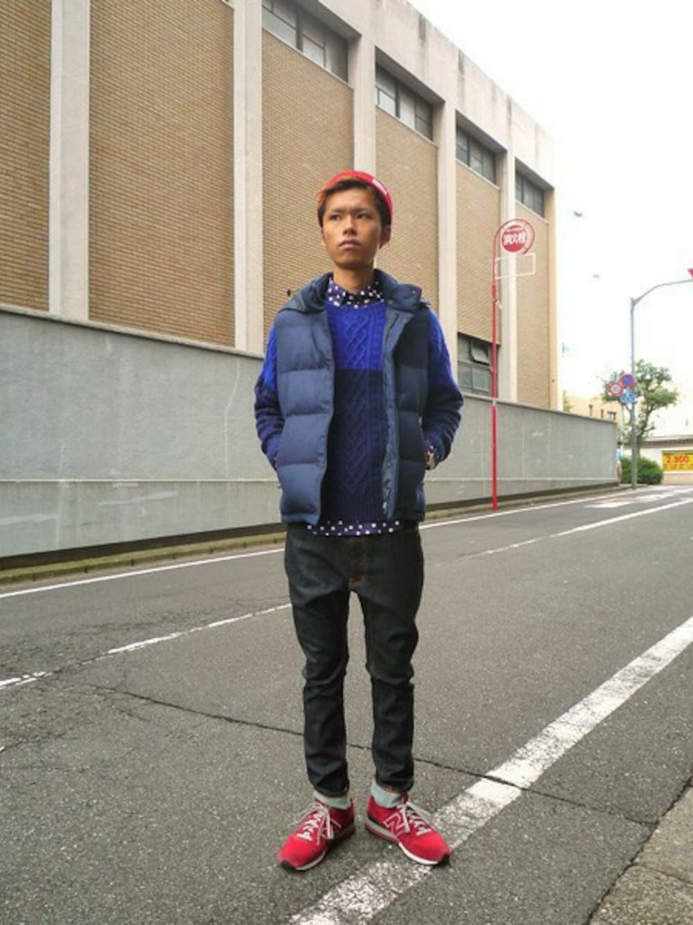 メンズビギ2013A/Wのカタログで、 俳優の山本裕典さんが着用しているダウンベスト(税込み¥12,600)とバイカラーのアランセーターです。 アランセーター(税込み¥7,980)は好評予約受付中ですよ!!