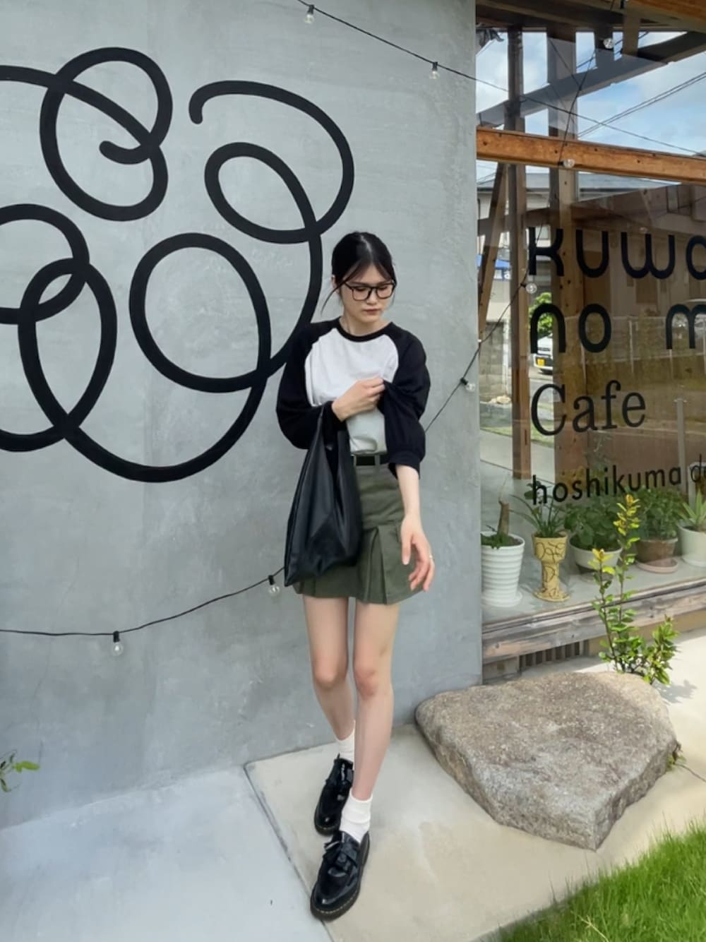 nachi*のトートバッグ「【Rain Leather/レインレザー】防水レザートライアングルマルシェバッグ/トートバッグ」を使ったコーディネート