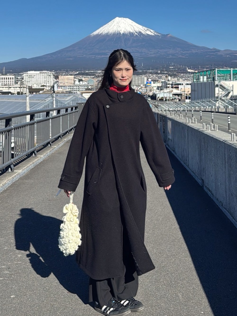 富士山見に行った日のコーデ🗻✨ バッグは自分で編んだ〜🎶🧶