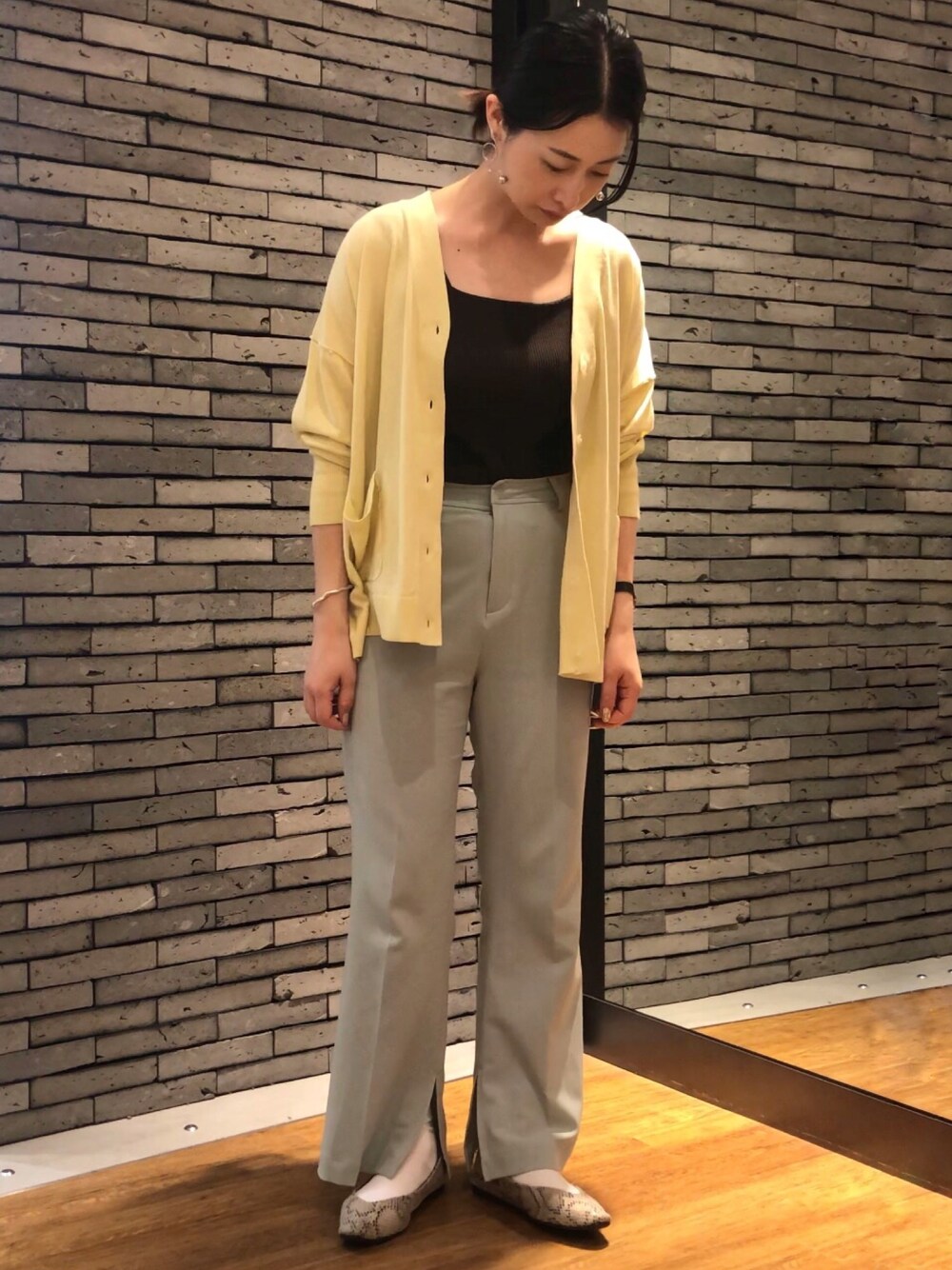🦭春カラーのカーディガンとボトムスに締め色にインナーはブラウンに🐾