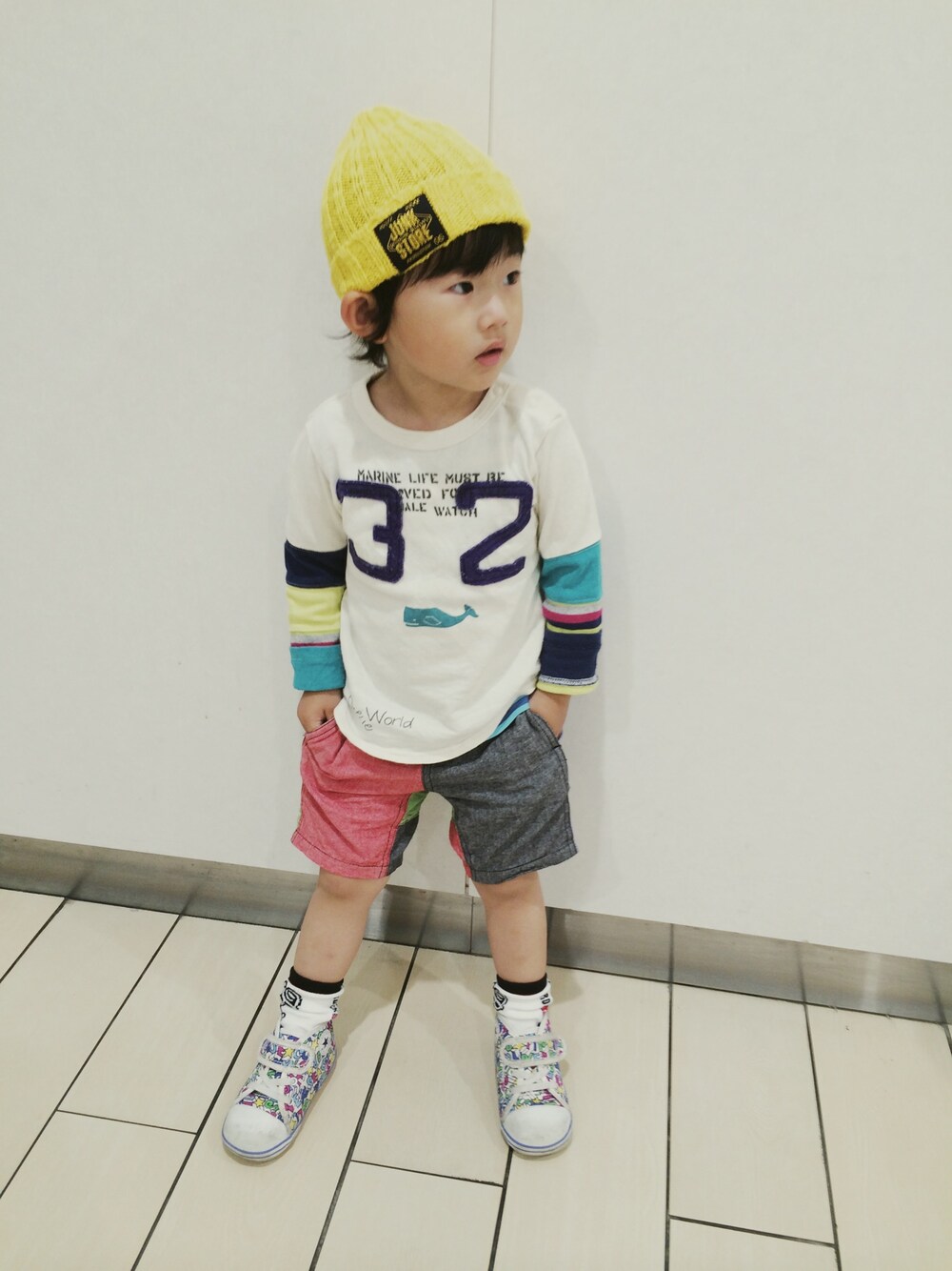 Tシャツ : JUNKSTORE ニットキャップ : JUNKSTORE スニーカー : コンバース