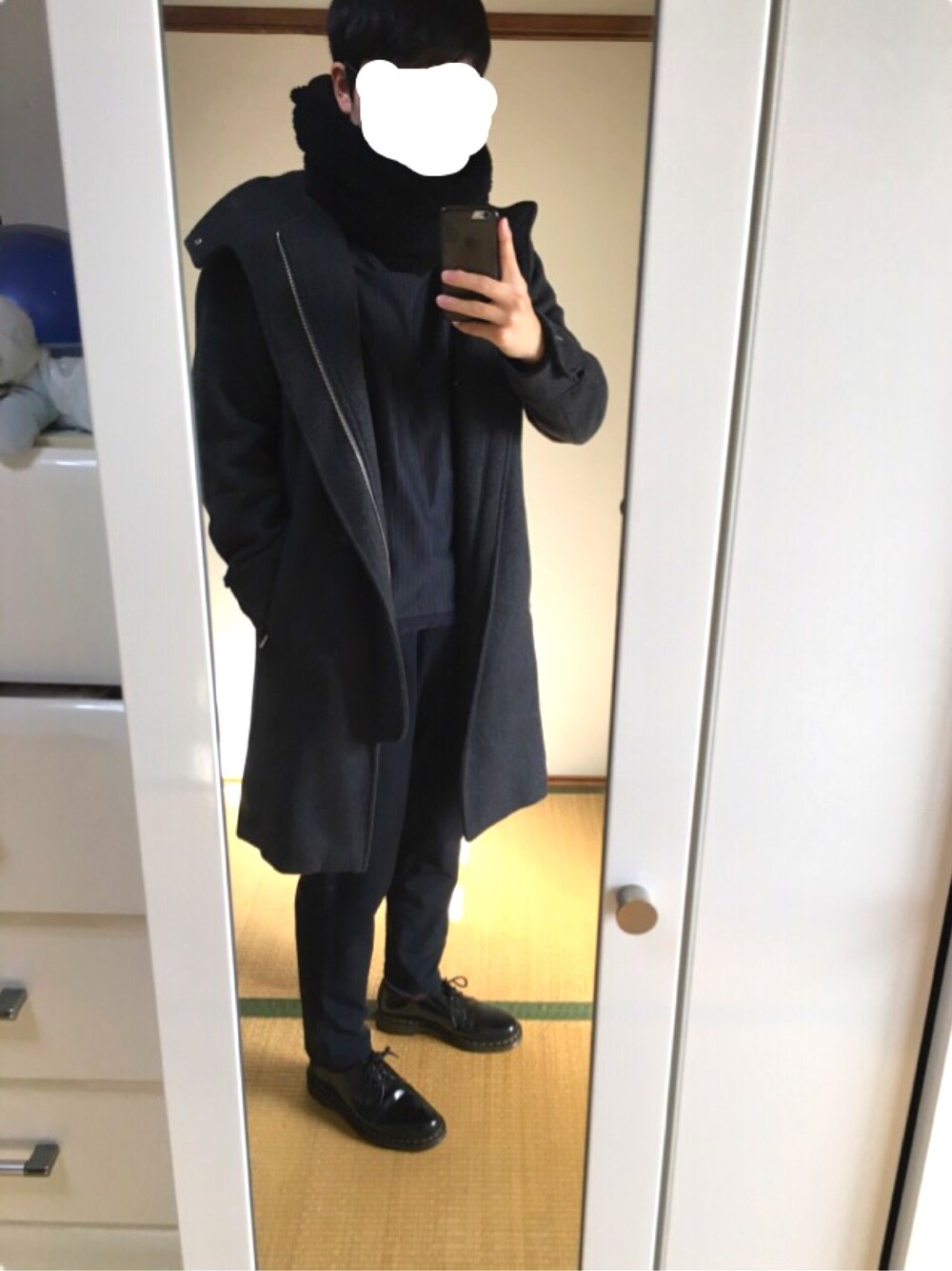 中をオールネイビーで合わせて他はモノトーン😀 今日は細身のパンツにパテントのマーチンで😉 これから秋葉原でメイドではなく授業でつかう部品を買いにいきます笑