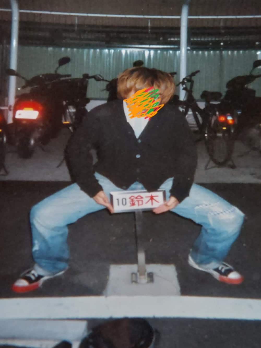 昔の写真1996年 パンツの上にデニムを履く UNDERCOVERの オールスタータイプは、左右色違い。 きれいめシャツにカーディガンを ヴィンテージジーンズではずす。