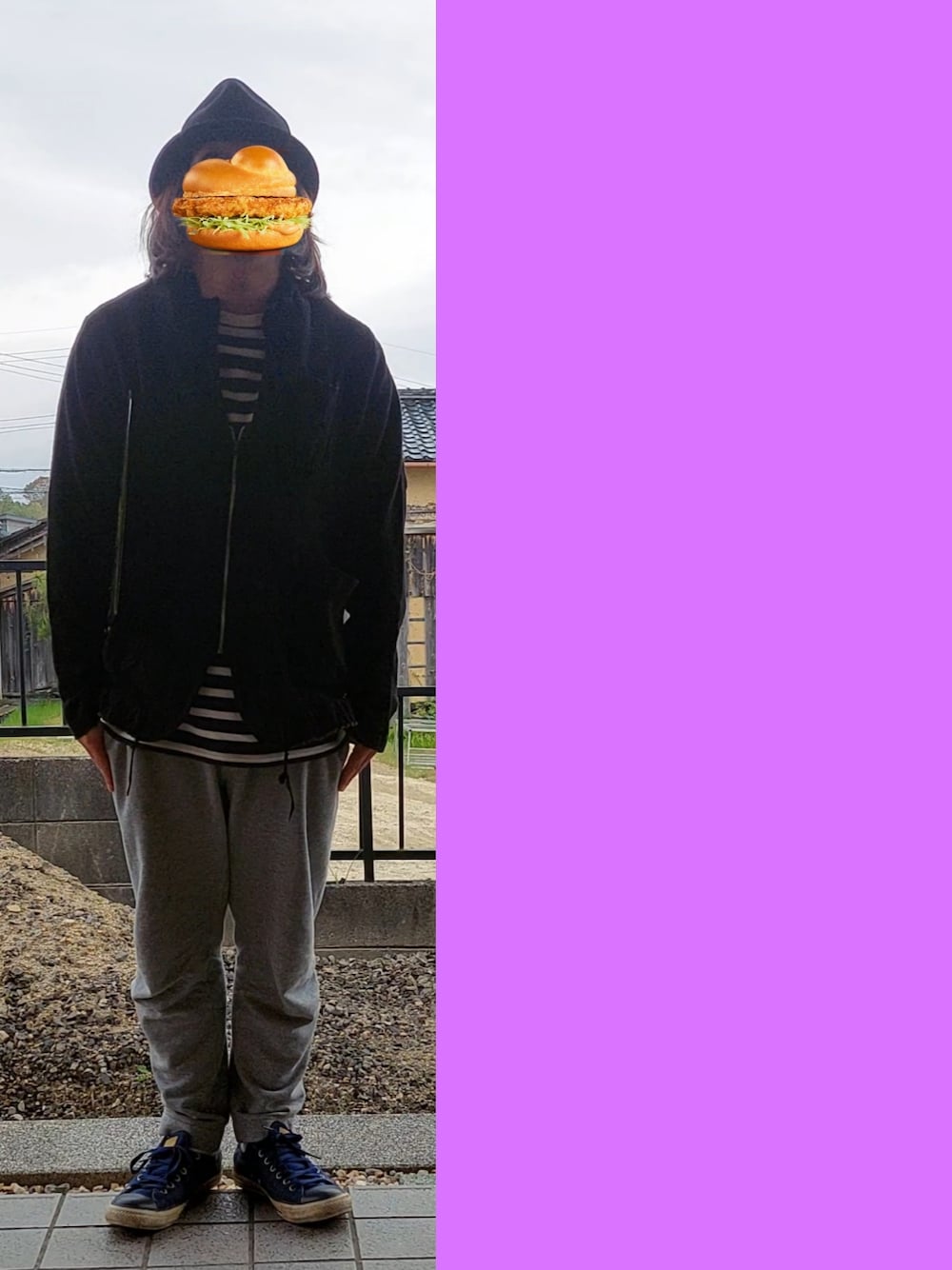 🎙️KEMURI 🎵アトイチネン 縮絨のZIPカーディガンジャケットで、 少しゆるくスエットパンツと ボーダーではずす。