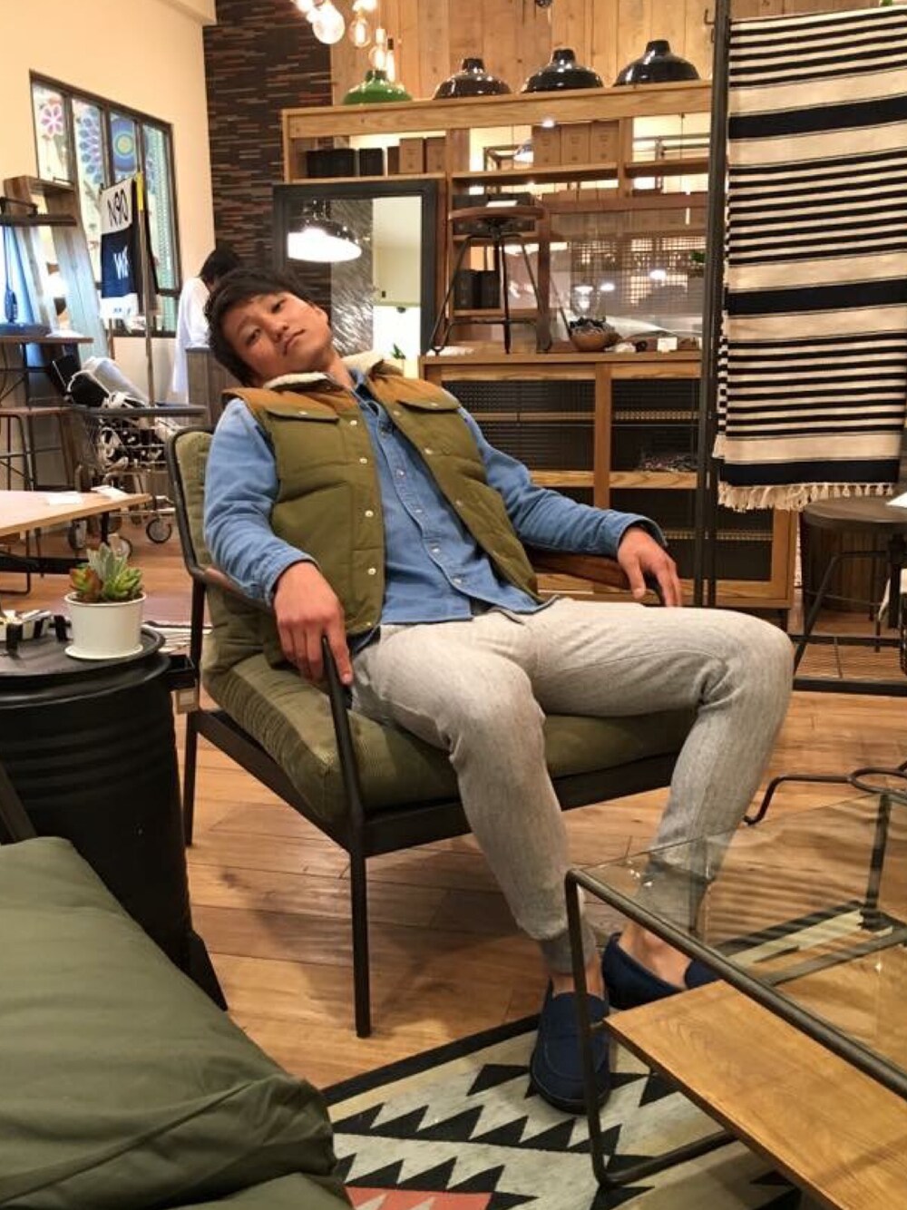 お久しぶりです! やっぱりスウェットは楽で良いですね👯 デニムシャツだけでは寒かったので、ベスト羽織りました☻
