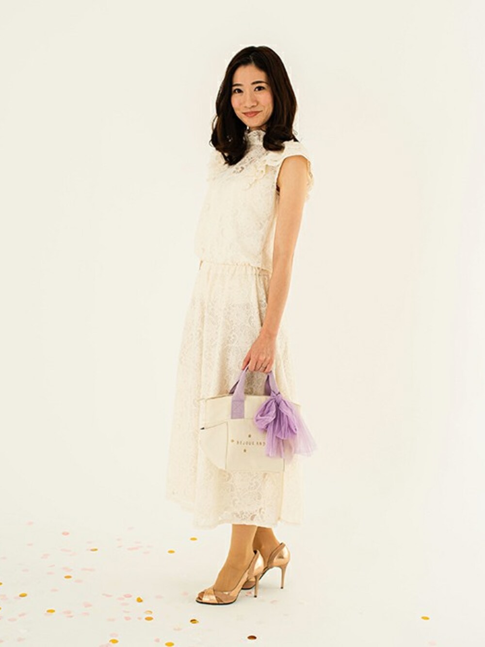 総レースのトップスとスカートのセットアップのコーディネート。 バッグは女性の持ち運びやすさを考えて作られた最も使いやすいサイズ感で バッグインバッグタイプで中のバッグはこれからの時期に必需品の保冷機能付きで持ち手もあるのでそれだけでも使用可能。 内側は勿論、サイドにもポケットがある高い収納性。防水加工を施しているので雨の日OK,汚れてもすぐにふき取ることができます。