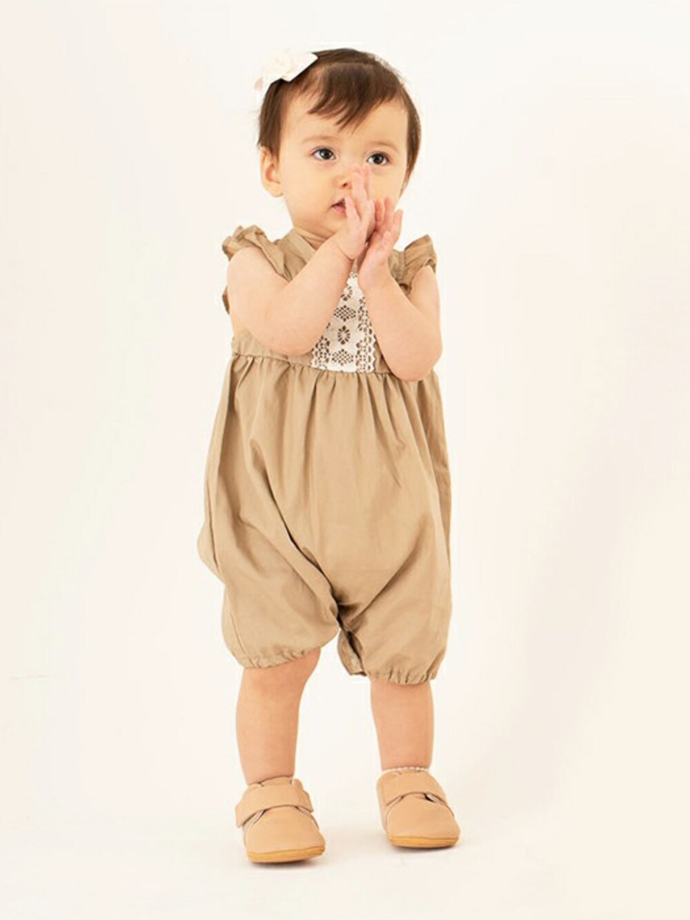 ビジュー&ビーのロンパース「レースとフリルのオールインワン」を使ったコーディネート