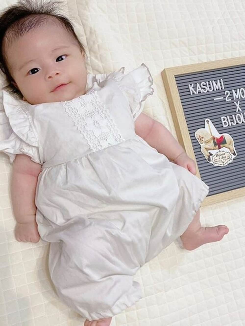 ビジュー&ビーのロンパース「レースとフリルのオールインワン」を使ったコーディネート
