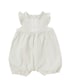 生地が分厚くないので、秋冬にはタートルなどとコーディネートしても可愛いロンパース。 オフホワイトだと肩のフリルが天使の羽根のように見えるので、可愛さUP!!