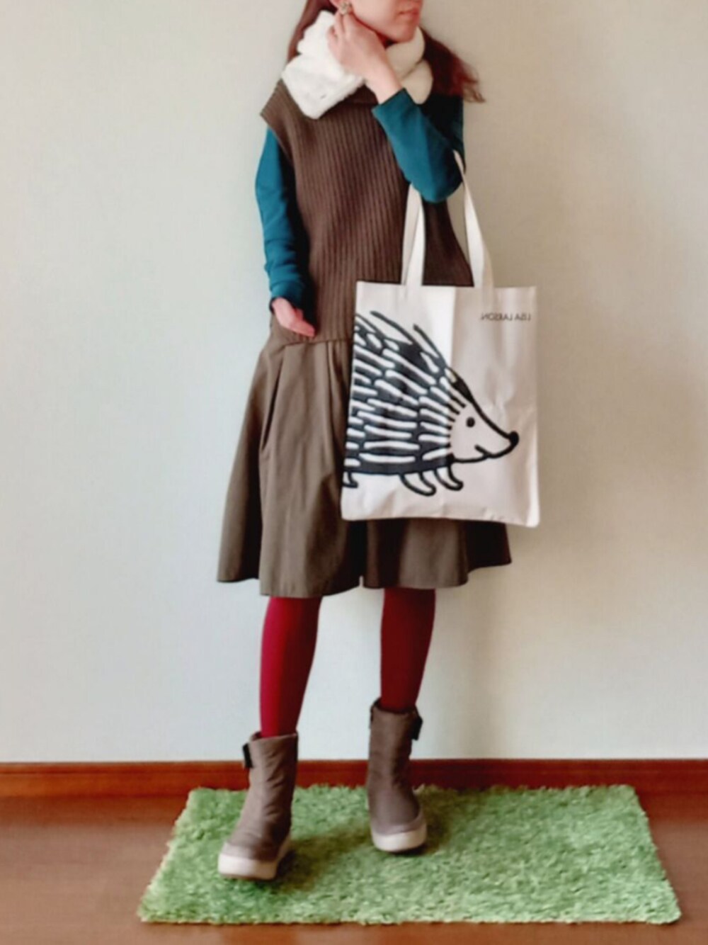 付け襟見てると可愛くて欲しいのだけど、 今はまだ寒いから、ネックウォーマーで付け襟風(笑) 洋服とブーツをカーキでまとめて、 リサラーソンのトートと白小物合わせにしてみました。 Thanks for watching♡ いつも本当にありがとうございます🤗✨