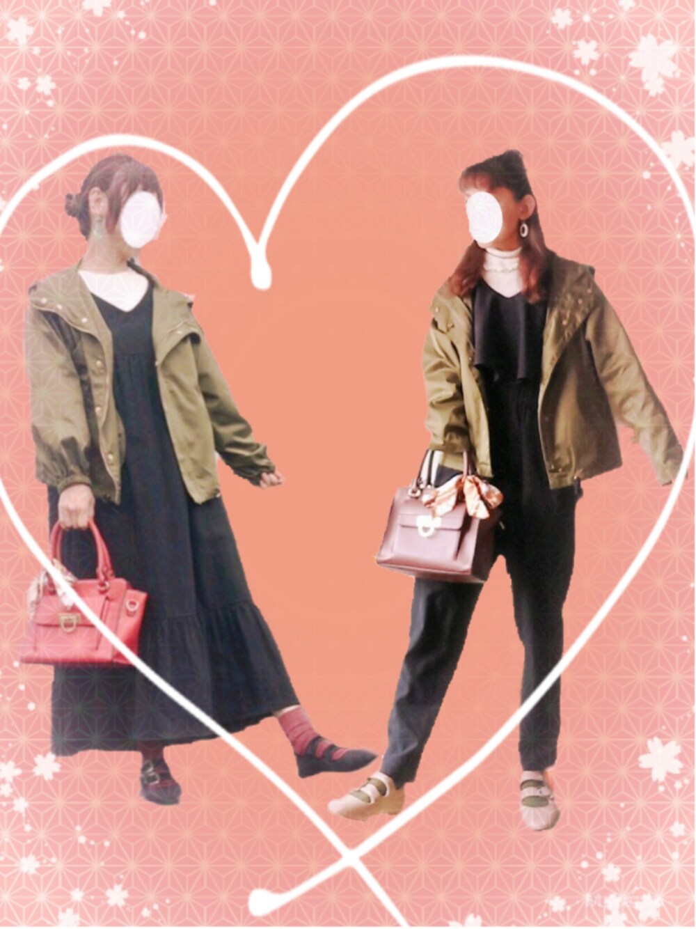 昨日のシンディ・ローパーコラボは、とても楽しくできて、 わざわざ見に来て下さった方々、コメントを下さった方々、 フォルダイン、フォローと、本当にありがとうございました✨ イベント続きですが、今日は仲良しの かおちゃんことkaopちゃんとリンクコラボです♡ 🌸『おそろいアイテムでお花見リンク』🌸 かおちゃんとは、冬にコラボしたリボンマフラー戦隊を きっかけに仲良くなりました😊友人のひろっちゃから、 人見知りでなかなか自分から打ち解けられないのだけど、 とてもいい子なんだと聞いていて、私も初期から 共通フォロワーさんのフォルダで見かけると、 個性を大事にして色んなスタイルに挑戦している子だなと 気になっていたので、仲良くなれてとても嬉しかったです🤗 かおちゃんのコーデを見に行くようになって、 全く同じブランドのアイテムをたまたま持っている事に気づき、 出た時期も購入した時期も互いにバラバラなアイテムなのに、 とても不思議で素敵な縁を感じました✨ 今回、私のコーデを見て彼女が色違いのシューズを買ってくれた ことをきっかけに、リンクコラボが実現★ おそろいアイテムと共に、寒暖差の激しいこの季節、 1枚持っていると便利なマウンテンパーカーをお互い同じカーキで合わせてリンクコーデしてみました♡ かおちゃんは黒のジャンスカタイプのワンピ、 私は黒のオールインワンタイプのコンビネゾンで、 シューズは彼女が黒で私がベージュのカンフーバレエシューズ、 バッグはfifthのバッグを赤とブラウンで バンダナをリボン結びして持ちました👜 私がハーフアップのおだんごにしたら、 かおちゃんも最近ヘアアレンジ頑張ってないと、 わざわざおだんごに結わいてくれて 毎日コーデをアップしている彼女のストイックさや がんばり屋さんなところに、また魅力を感じました🤗 一度ファッションメディアで彼女のコーデを見つけた時、 自分のことのように嬉しかったです✨ 天然でおっちょこちょいなところもあるかおちゃんだけど、 がんばり屋さんで何事にも一生懸命な姿に、 私はいつも励まされています✨ 今日も、いつも、ありがとう、かおちゃん(о´∀`о)♡ いつか本当にお花見とショッピングできたらいいなぁ🌸 今日は外出してしまうので、コメ開けますが 返信遅くなってしまったらごめんなさい🙇♀️💦 Thanks for watching and reading♡