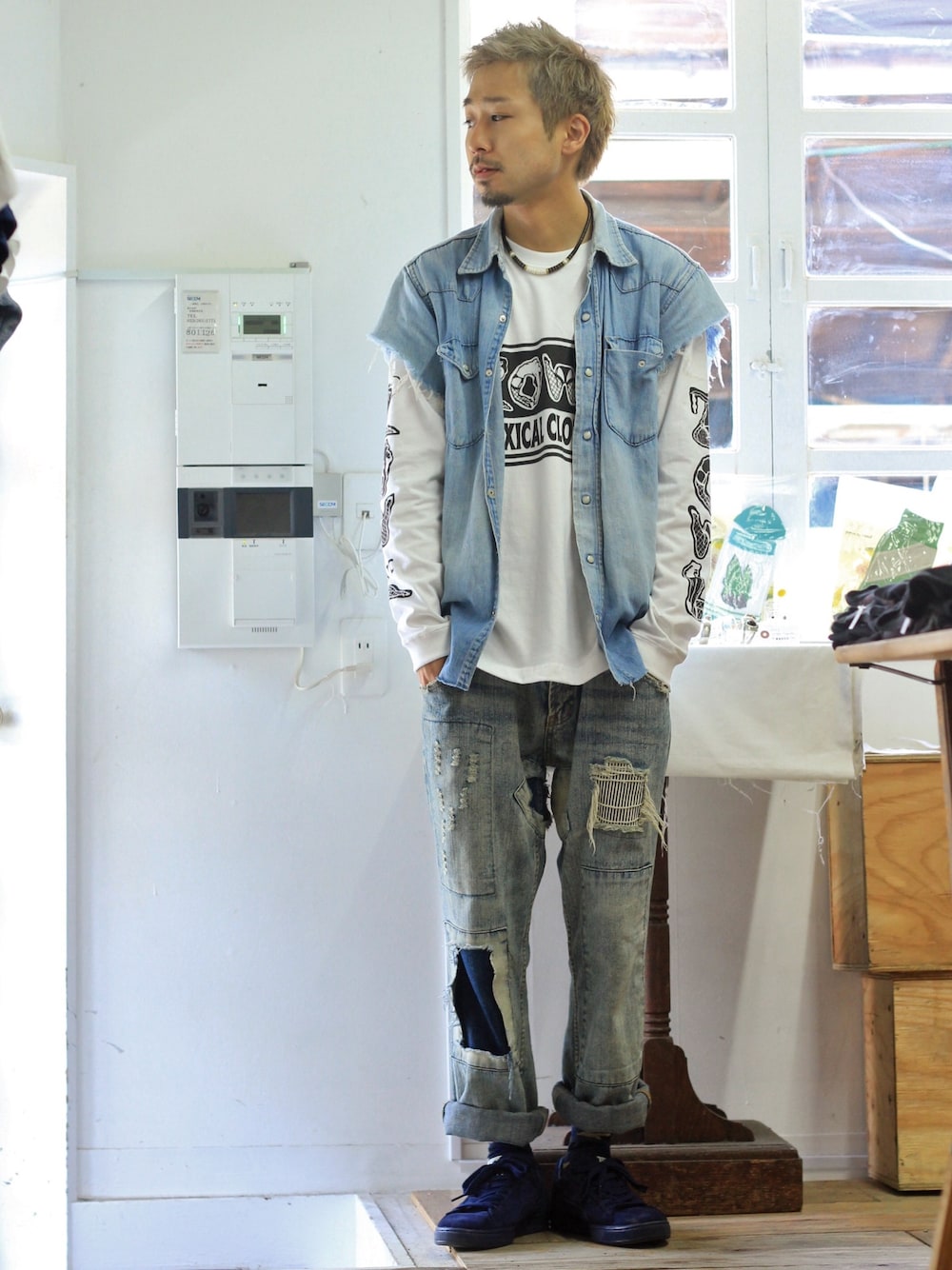 今日はブルー、ネイビー系でまとめましたー。👕 デニム🔛デニムです。
