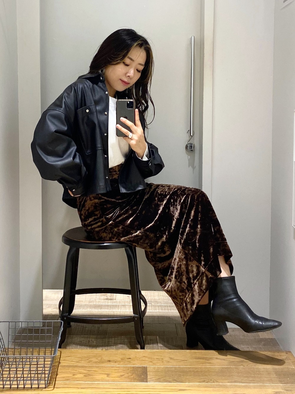 髪色を暗くしてから強めのコーデが好き♡ ジャケットは軽くてニット合わせでも苦しくない! スカートも伸縮性あるから楽チン! キメキメだけど楽に着れるコーデです!