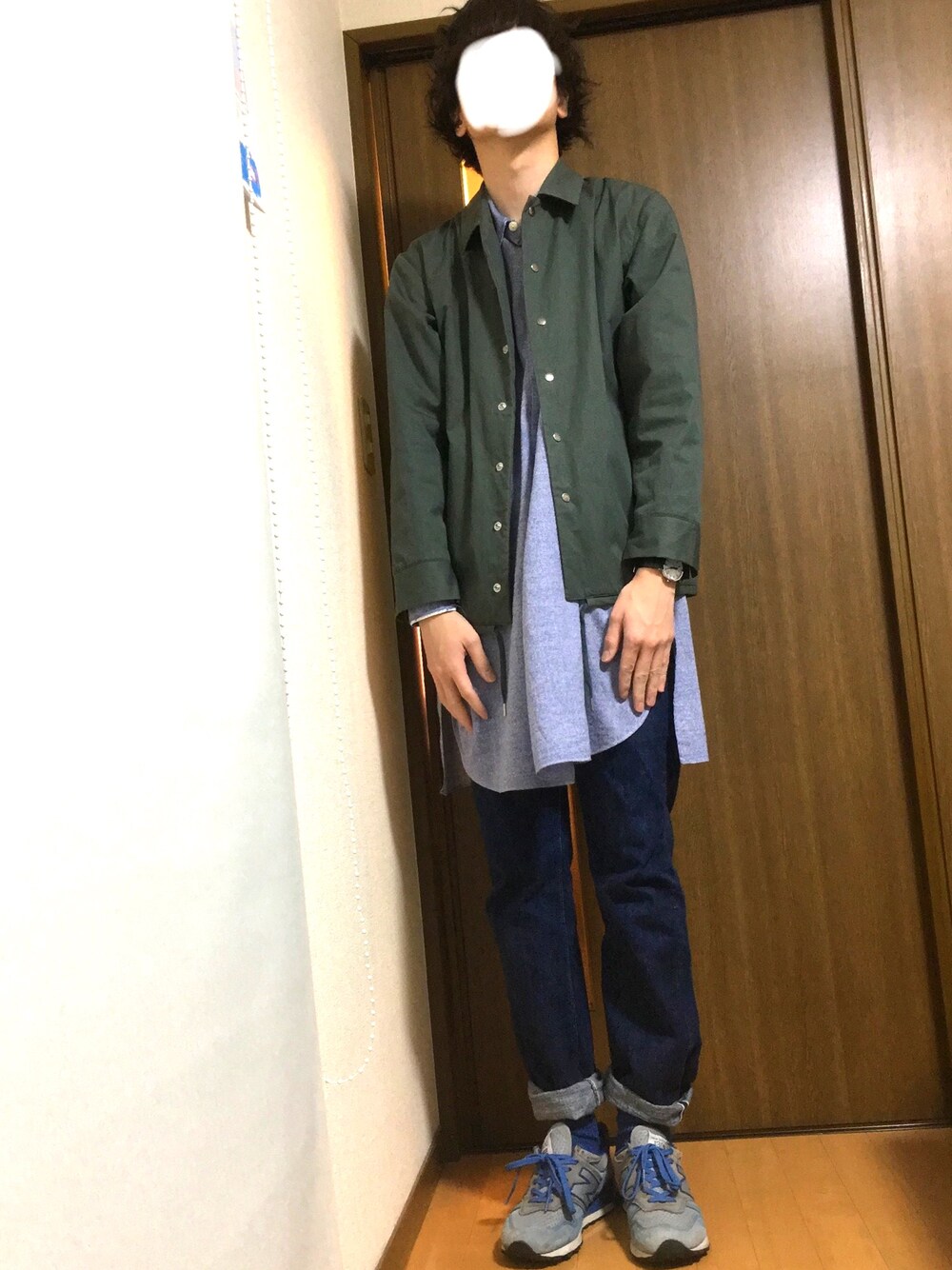全身青に、カーキ…