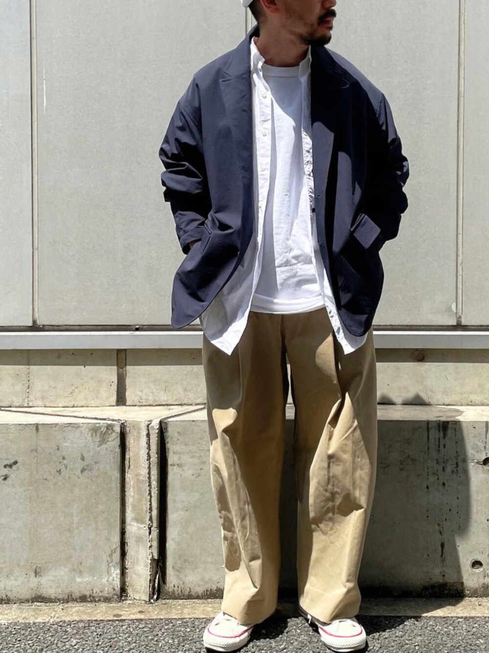 binhigeのチノパンツ「【STUDIO NICHOLSON】 PEACHED COTTON VOLUME PLEAT PANTS」を使ったコーディネート