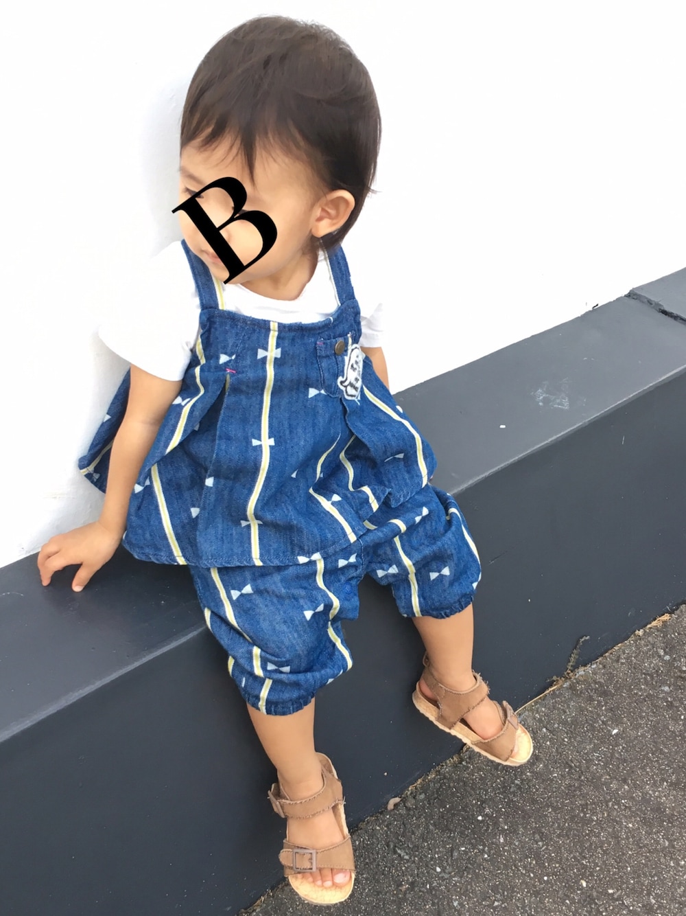お友達が引越しの時に餞別にプレゼントしてくれた服で、引越しぶりにそのお友達親子に会いに。 身長80㎝を超えたところなのでまだ90サイズは大きめだけど、肩紐を1回結べばいい長さに◎これもお友達親子の知恵を拝借。