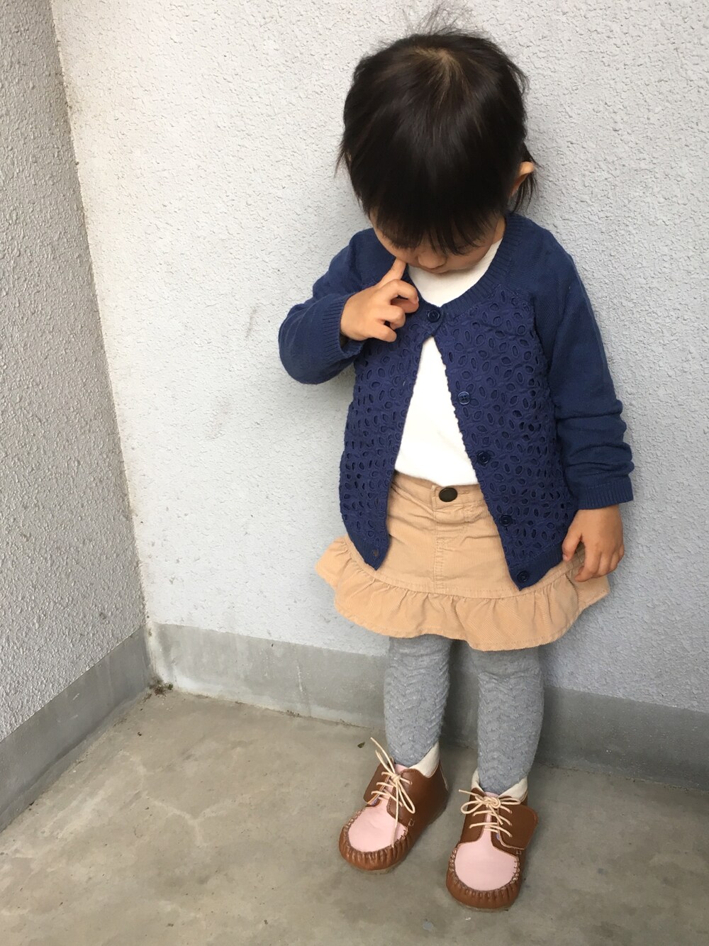 偶然にもGAPで組み合わせてた日。 カーディガンは80㎝、スカートはおさがりの90㎝。 スカートはまだ大きくてどんどんずり落ちてた、、、