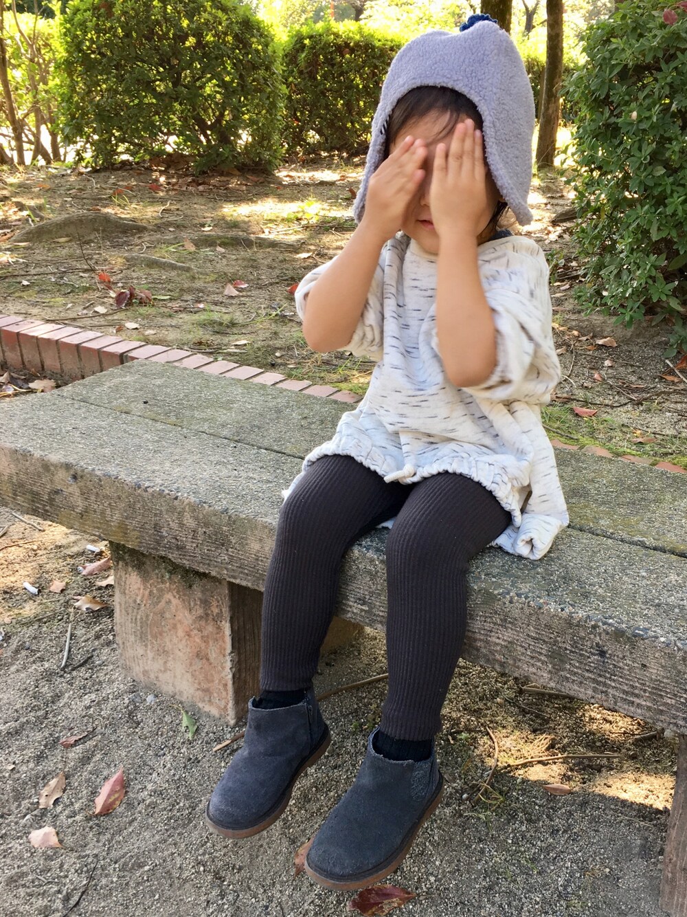 ZARAのトップスはかなりオーバーサイズの120cm。 モンミミのレギンスは娘も「きもちいいー!」と言ってお気に入りの様子。 靴はおさがり。 帽子は1歳の時に買っていたものだけど、今年もかぶれる。