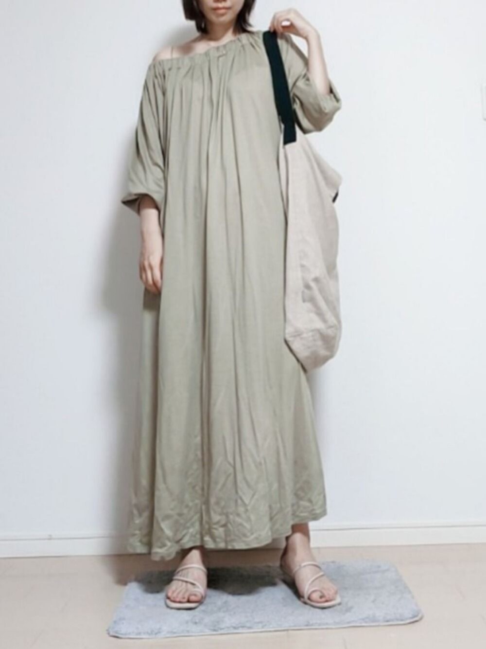 いつも閲覧ありがとうございます😊 リラックス感のあるワンピにエコバッグを提げてゆるゆるっと楽ちんに。