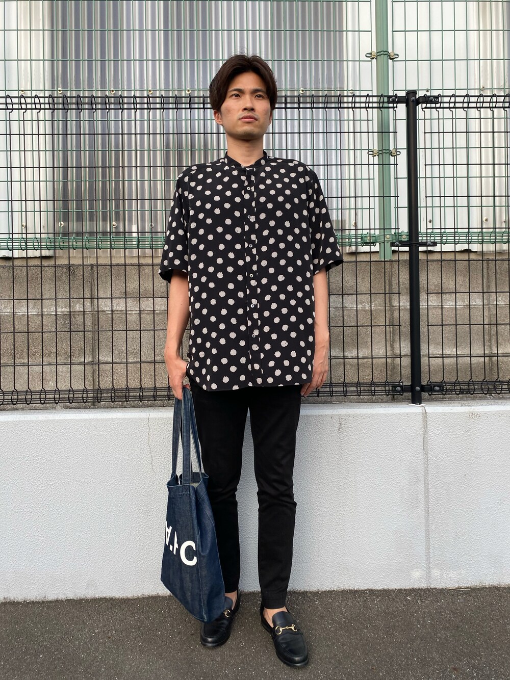 スタイリッシュにシンプルコーデ😊 このドットのシャツは、きれいな感じにまとめてもお洒落にみせてくれるので使いやすい!