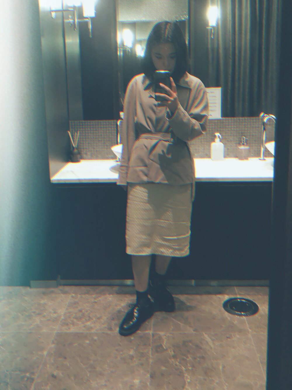ほろ酔いで座っていたのでスカートがシワシワなのはご愛嬌…