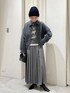 グレーのワントーンコーディネート✨ ラメ糸の求心ニットや白カットソーのレイヤードでのっぺりしないおすすめスタイリングです!