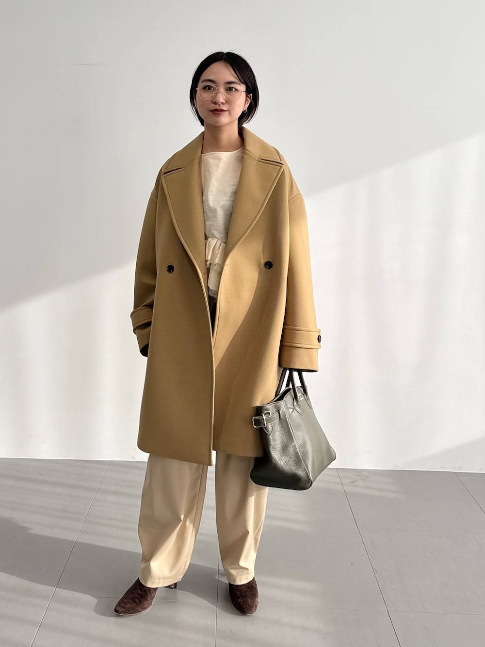 トレンド感のあるシルエットのコート コート 肉厚なのに軽くて羽織やすいミディ丈のコートです! 丸みを帯びたシルエットで女性らしさもプラスできます。 裏地が付いていて脱ぎ着もスムーズです。 しわになりにくいので長時間の着用もおすすめです。 カジュアルにも綺麗めにも合わせやすいコートです!