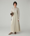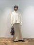 ワンピース キャミソールタイプのワンピースです。 紐を結んで着丈の調整が出来ます。 さりげないサテンの光沢感と身体のラインを拾わないストレスフリーなサイズ感がポイントです。 ワンピースの上にニットを合わせてスカートとして着用しています! ニット ボトルネックデザインのニットです。 肌触りのよいハイゲージニットで着回し抜群のアイテムになります。 中にシャツをレイヤードして着るのもおすすめです。