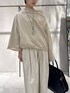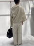 トップス デザインの効いたスウェットです。 生地は厚みがありますがごわつきはないです。 裾にゴムが入っていて絞って調節が出来ます! 肩を落としてワンショルで着ることも出来ます。 パンツ 人気のウェザータックワイドパンツに新色が出ました。 麻が入った素材でハリのあるスカートのような見え方のパンツです。 色によっては少し透け感があります。