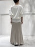 トップス ウエストがぎゅっと絞ったデザインのカットソーです。 全体的にゆったりシルエットです。 インナーがちらっと見える首回りのデザインなので、タンクトップやレースキャミソールなどを一緒に着用すると◎ スカート Iラインのとろみのある生地でできたスカートです。 キュプラの素材で程よい光沢感があります。 お尻周りが少しタイトなので、着丈の長めなトップスで合わせたり、サイズアップがおすすめです。