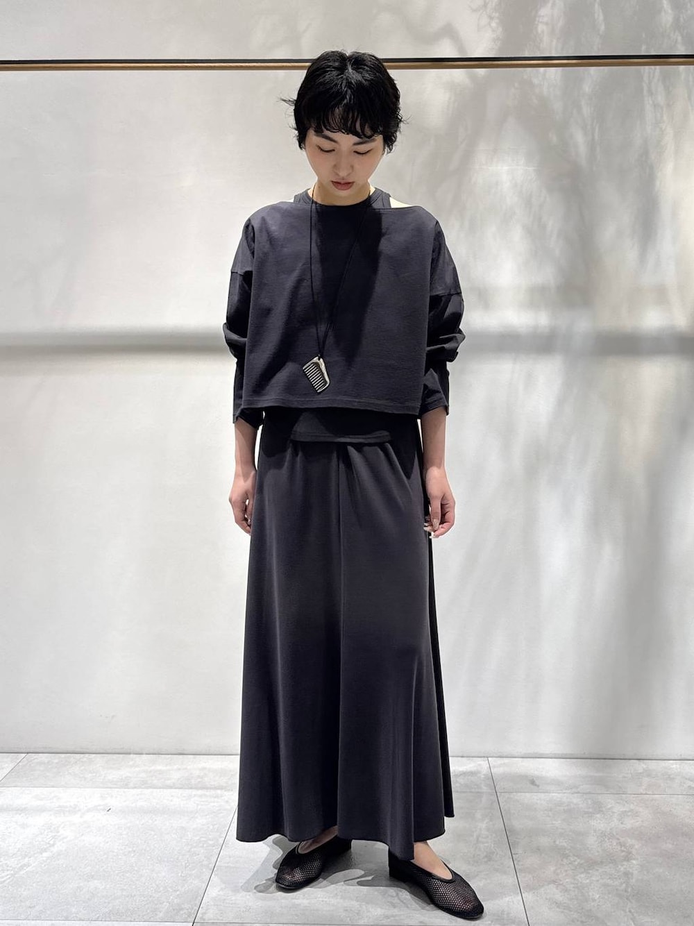 去年も人気だったアメスリのセットカットソーでワントーンコーディネート トップス 色んな着方が出来る人気のカットソーです。 アメスリタンクトップとカットソーのセットです。 タンクトップは少しタイトめ、カットソーはゆったりシルエットで短丈です。 セットで着るとバランスが良く、別々でも重宝します! スカート ゆったりドレープがついたスカートです。 ウエストは内側にゴムが付いていて伸縮性があります。 フライス生地でカジュアルなスカートです!