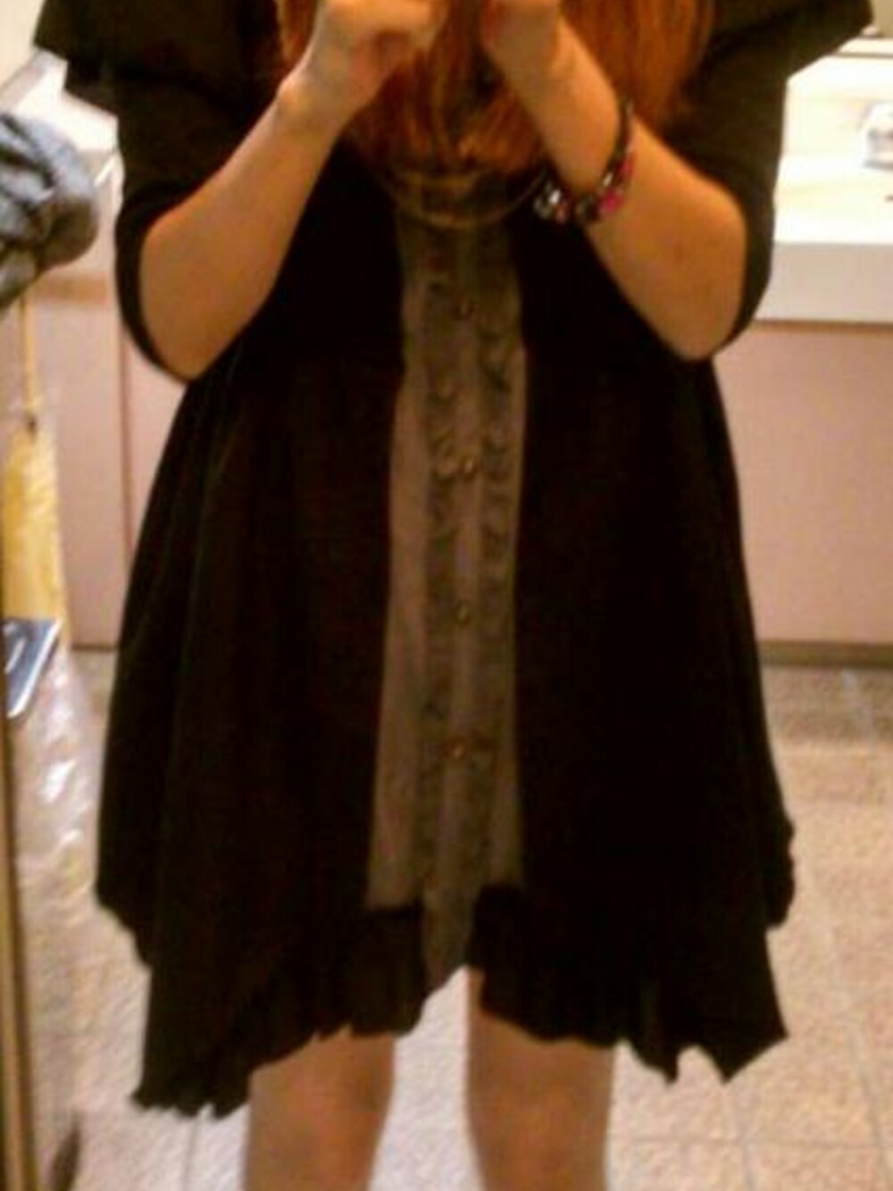 半袖のワンピースですが、秋になりかけだったので7分丈のシャツをインナーに。